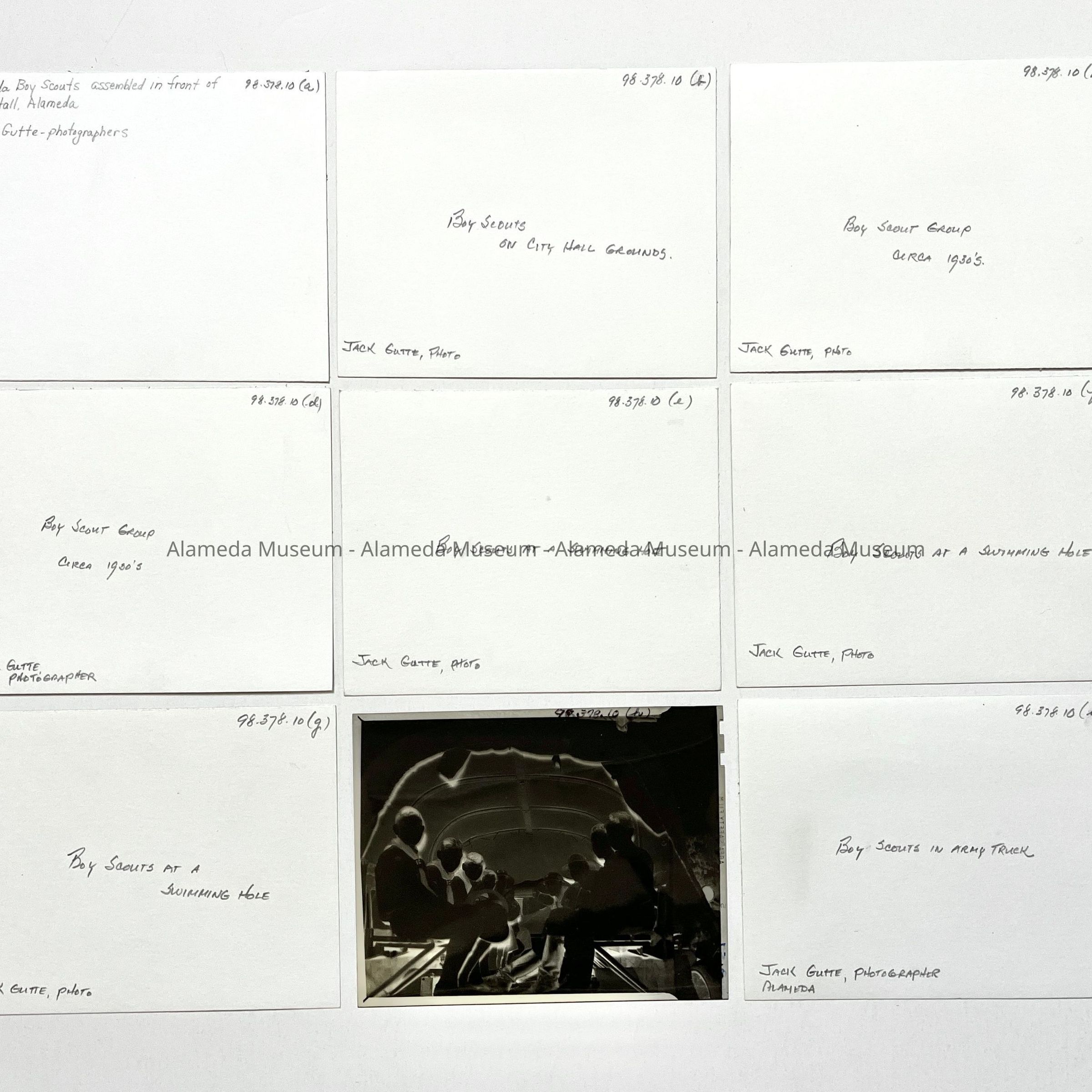 Description: Modern black/white contact prints, vintage photos, and negatives comprising work of Jack Gutte, commercial photographer, 1287 Caroline St., Alameda. The modern contact prints were made by Dr. Vernon Rabbach of Alameda.