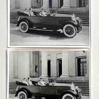 Photos of car with occupants in front of old High School, c. 1927-1928Entry/Object ID