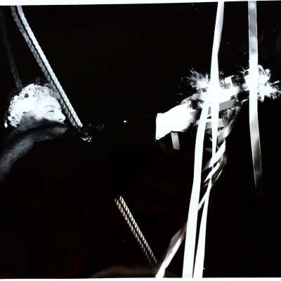 d. (undated): Madeline Martin – with fur stole – lifting a bottle ready to throw