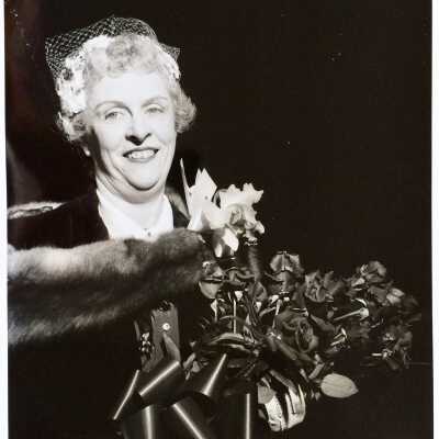 a: (undated) Madeline Martin – with fur stole – posing with flowers