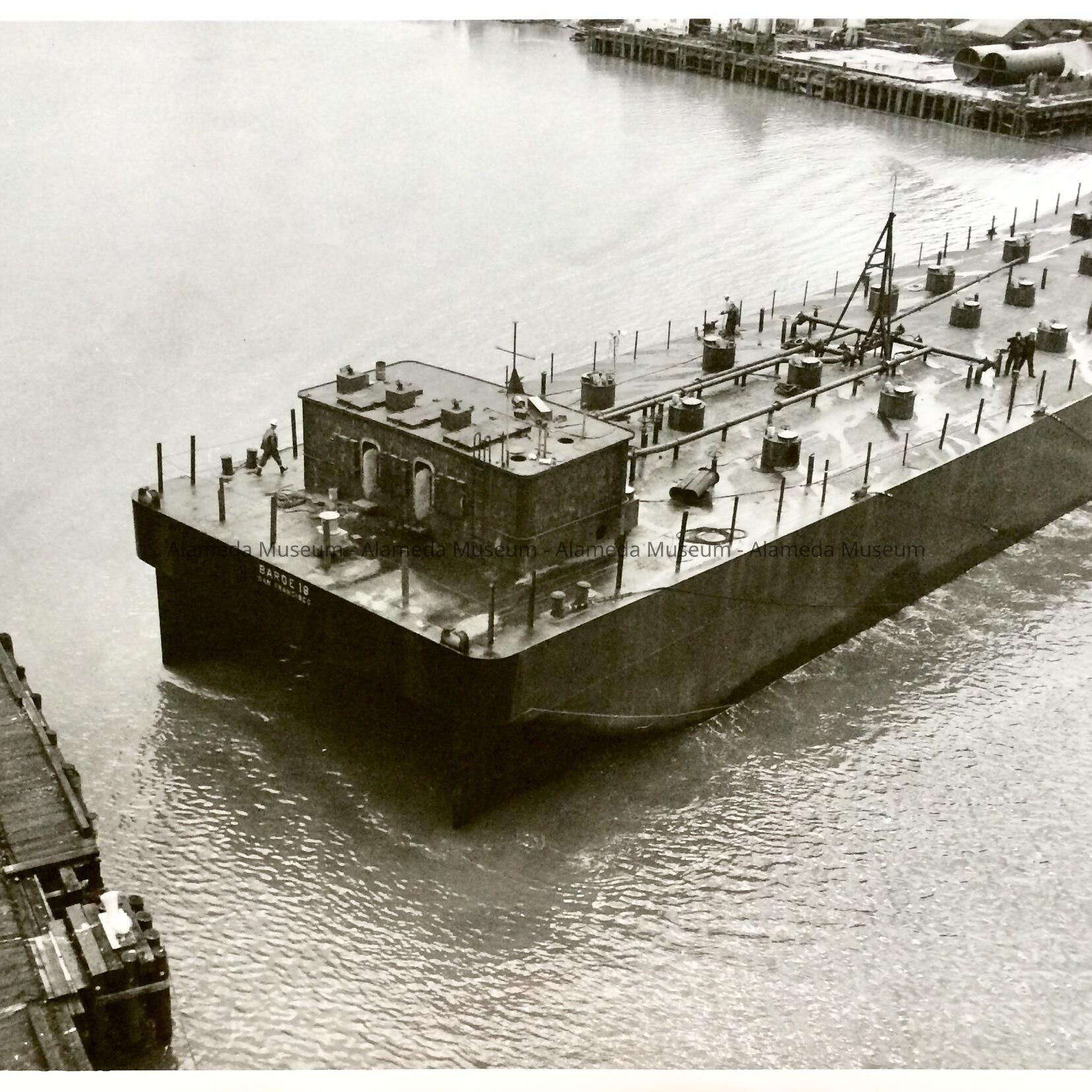 Photos taken of the Christening on 3/15/1957 of Barge 18, built by Pacific Coast Engineering Company. Photos owned by Madeline Martin (b. 1905, d. prior 2020), an industrial nurse, working for PACECO in Alameda.
