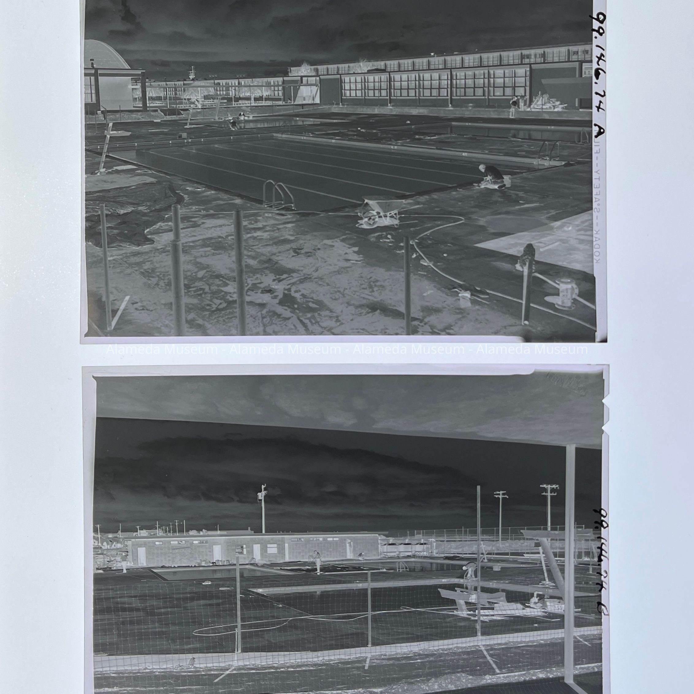 History of Object: Two views showing the construction of the Encinal High School Swim Center.