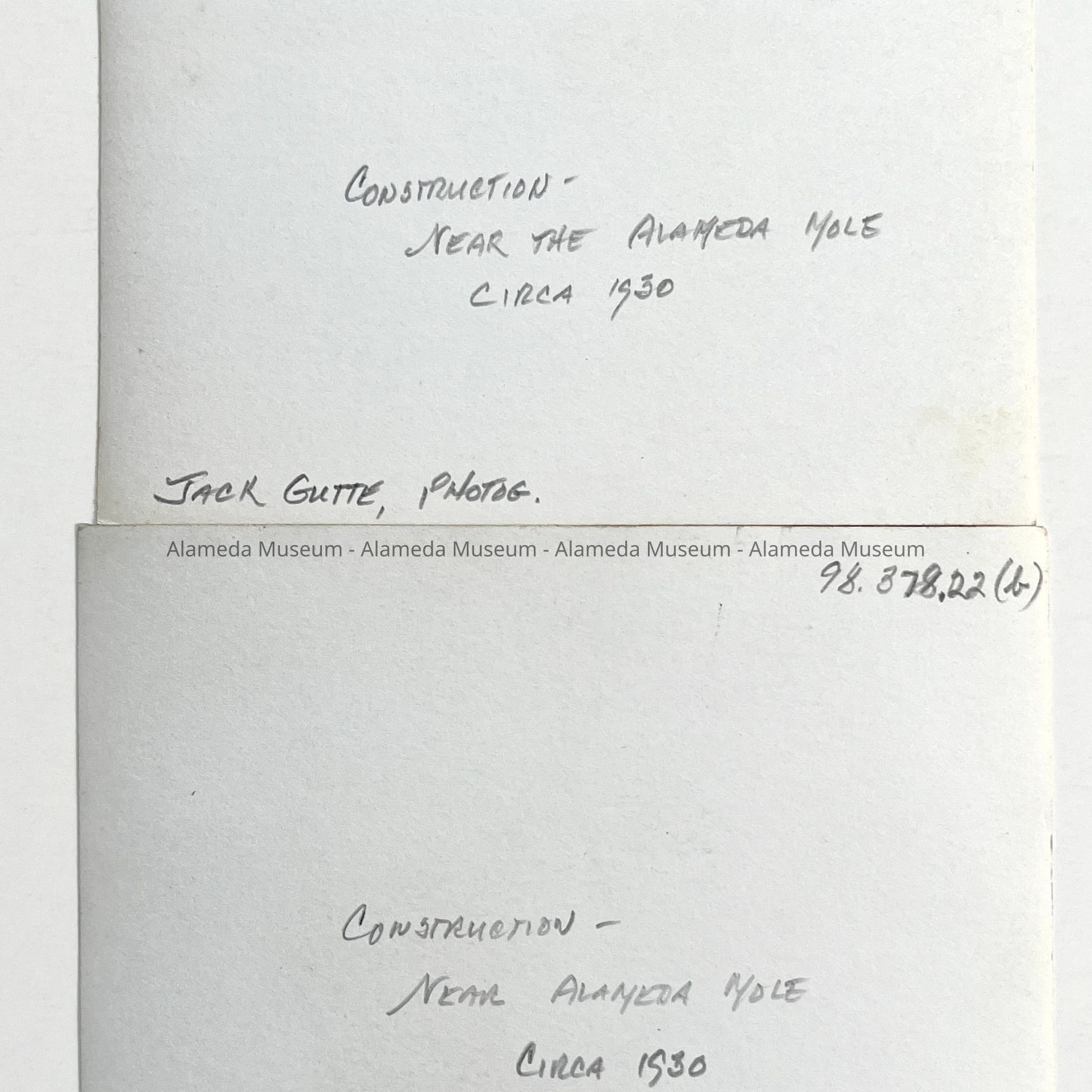 History of Object: Two views of construction work thought to be located near the Alameda mole.