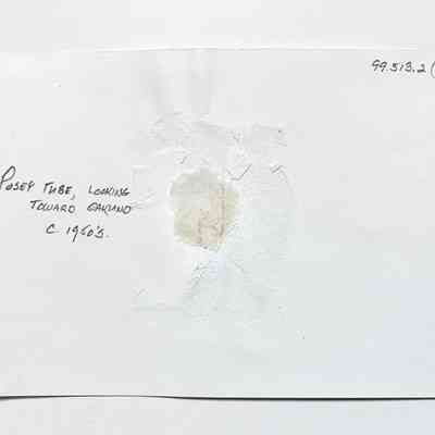 Description: Set of glossy black/white photos, unmounted. Photographer unknown. The backing of all the images suffers damage from glue and thinning from having been peeled from out of an album; in a few cases there is a resulting hole penetrating the emulsion.