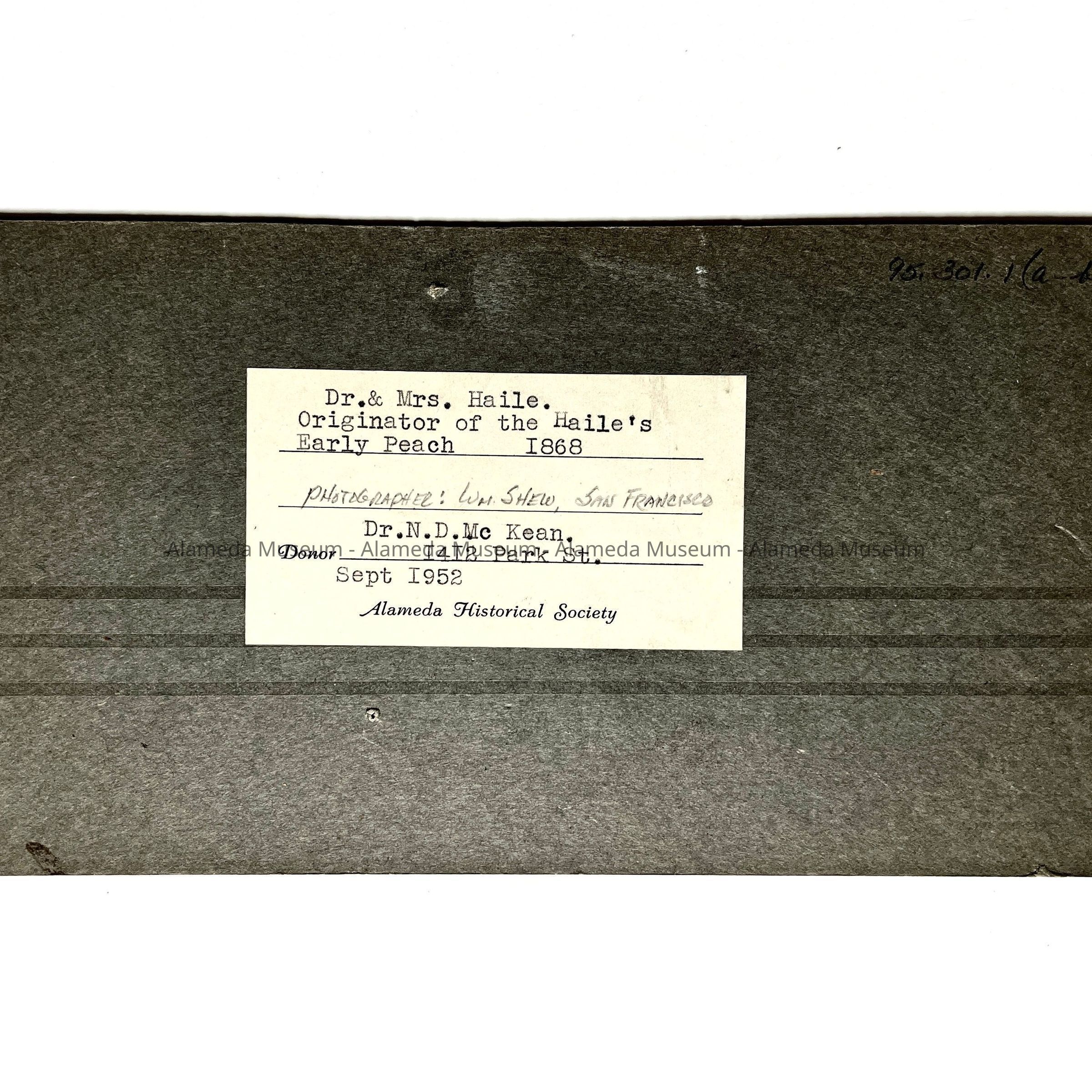 (a) Dr. Haile, wearing a top hat. He owned property located between Encinal and San Jose, extending from Post Street to San Leandro Bay. On this property he engaged in horticulture and he developed a peach variety called "Haile's Early Peach".