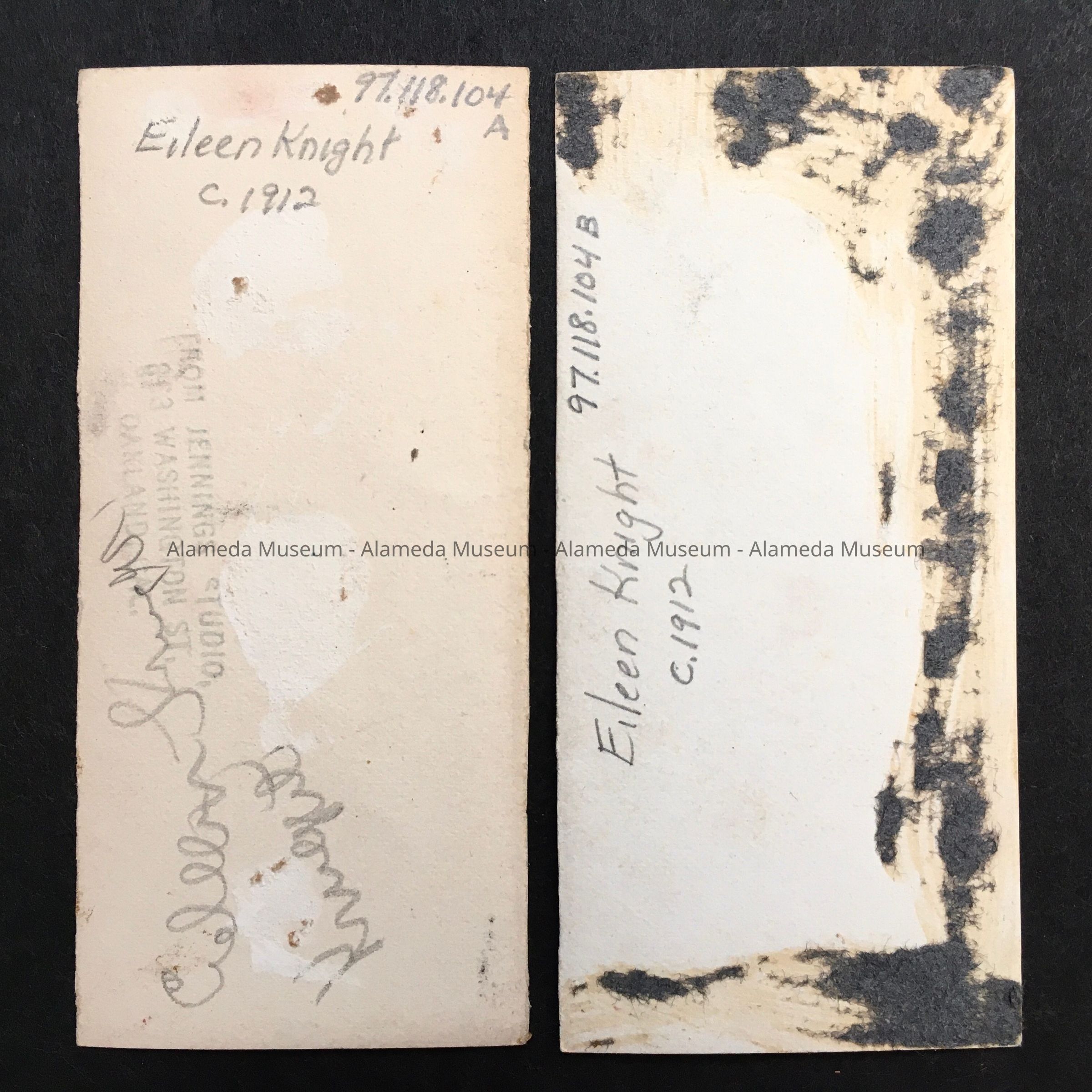 SERIES OF TWO BLACK-AND-WHITE PHOTOGRAPHS. ONE IS SIGNED ON THE REVERSE SIDE, "JENNINGS STUDIO, OAKLAND, CALIFORNIA."