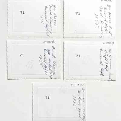 Description: Glossy black/white photos with serrated edges, unmounted. Photographer unknown.