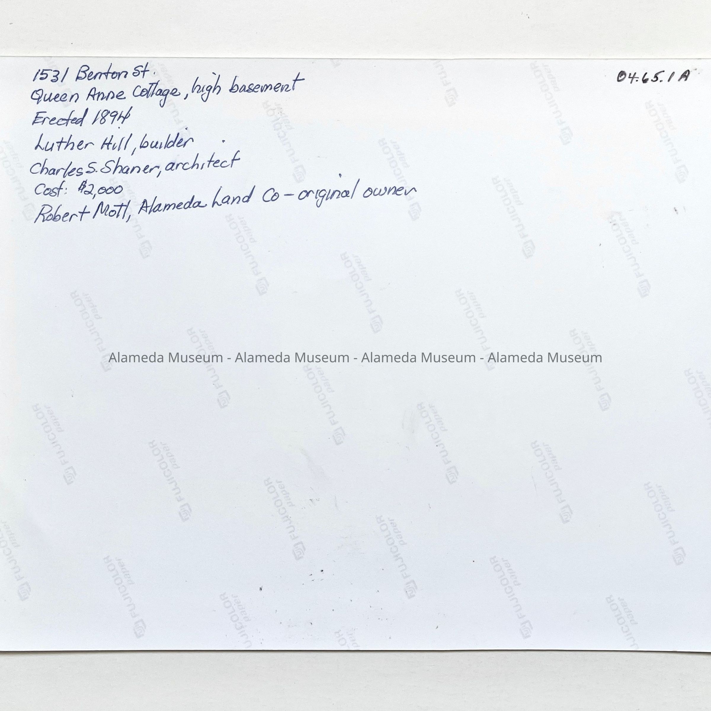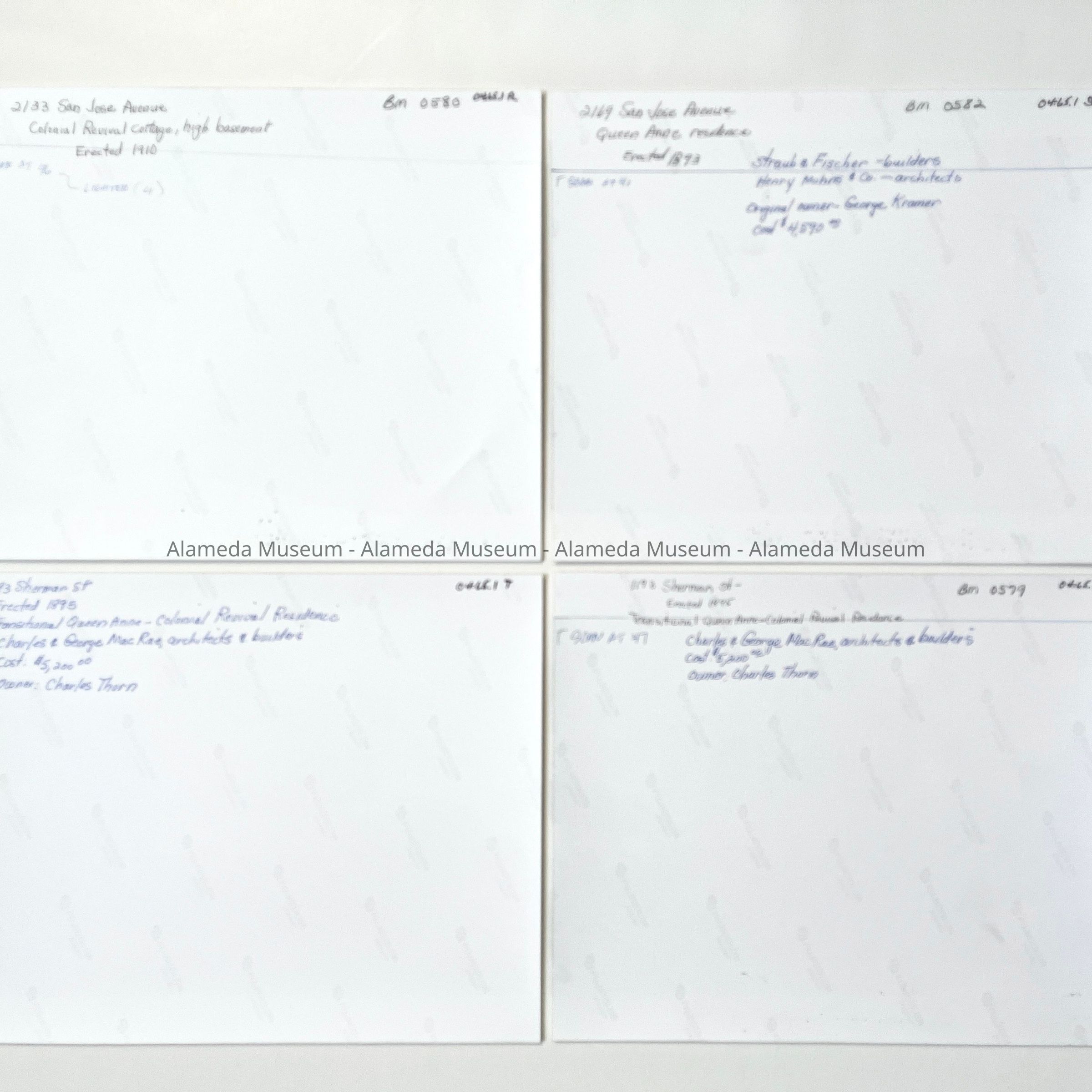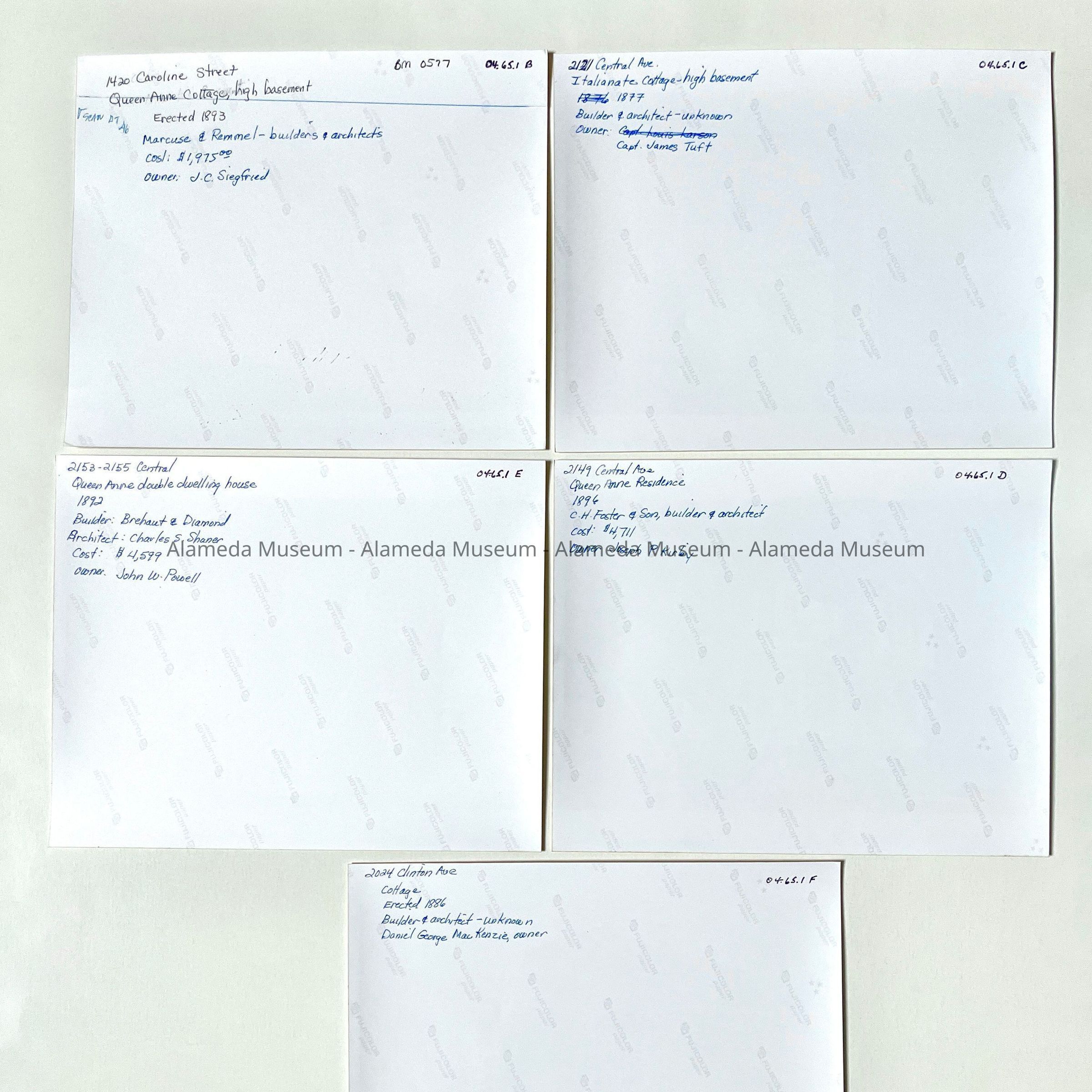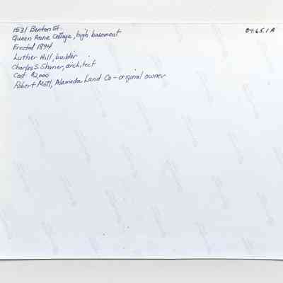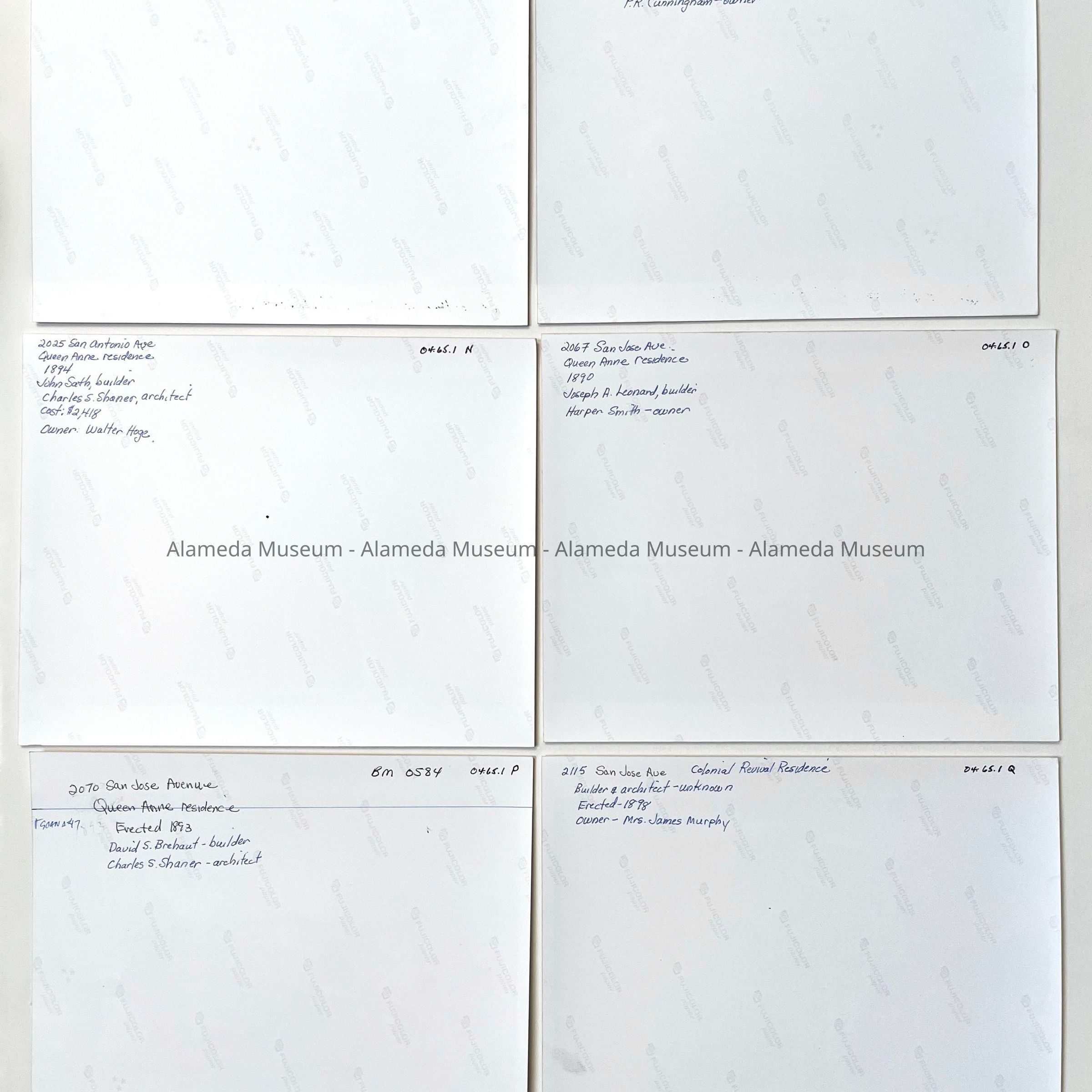 History of Object: Exterior views of Alameda Victorian residences: A) 1531 Benton St.; B) 1420 Caroline St.; C) 2121 Central Ave.; D) 2149 Central Ave.; E) 2151 - 2153 – 2155 Central Ave.; F) 2024 Clinton Ave.; G) 900 Grand St.; H) 903 Grand St.; I) 1117 Morton St.; J) 1124 Morton St.; K) 1018 Paru St.; L) 1000 San Antonio Ave.; M) 1717 San Antonio Ave.; N) 2025 San Antonio Ave.; O) 2067 San Jose Ave.; P) 2070 San Antonio Ave.; Q) 2115 San Jose Jose Ave.; R) 2133 San Jose Ave.; S) 2169 San Jose Ave.; T-U) 1193 Sherman St.; V) 1024 Union St.; W) 1539 Verdi St.; X-Y) 1279 Weber St.