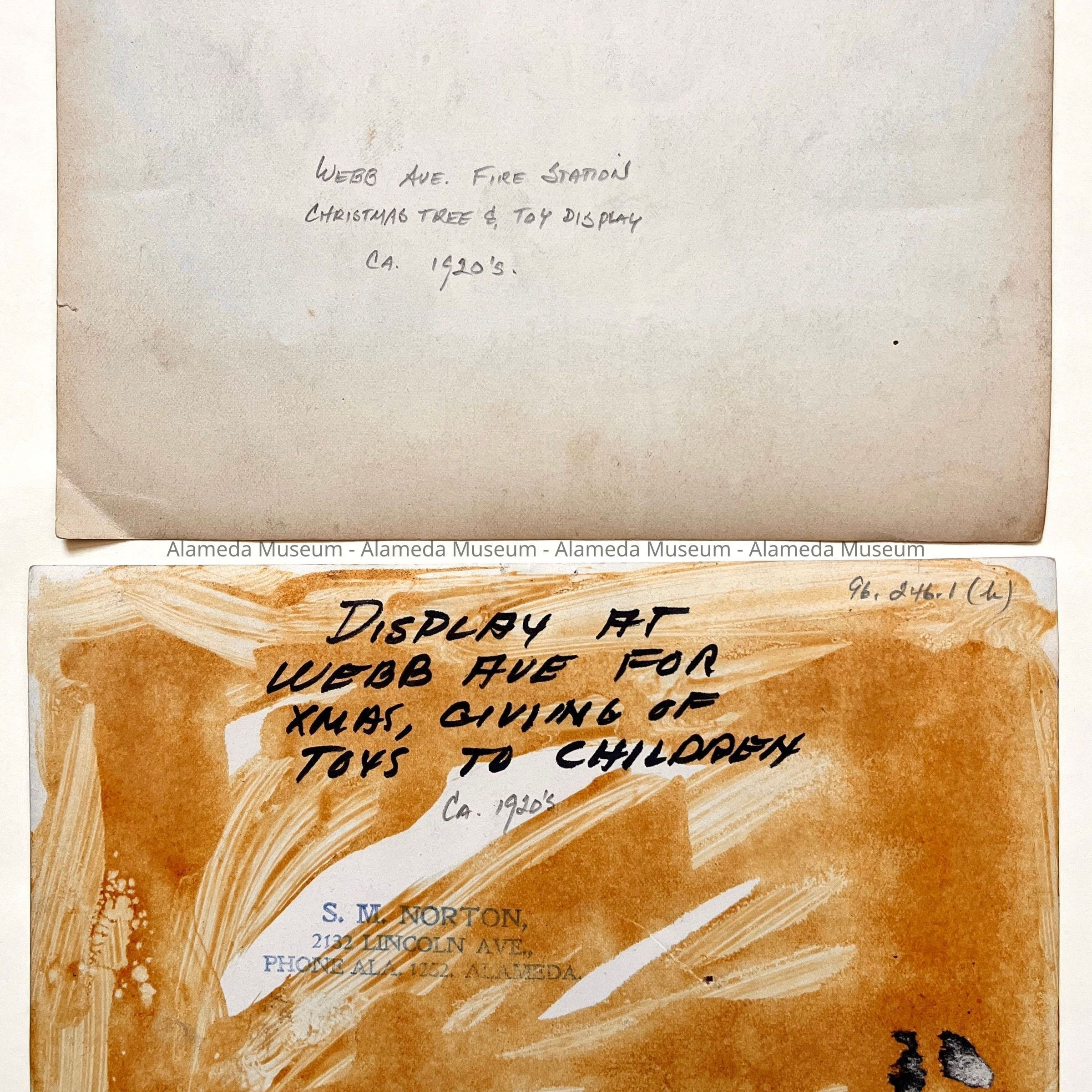 Photos of Fire Station Christmas Tree display, c. 1920sEntry/Object ID