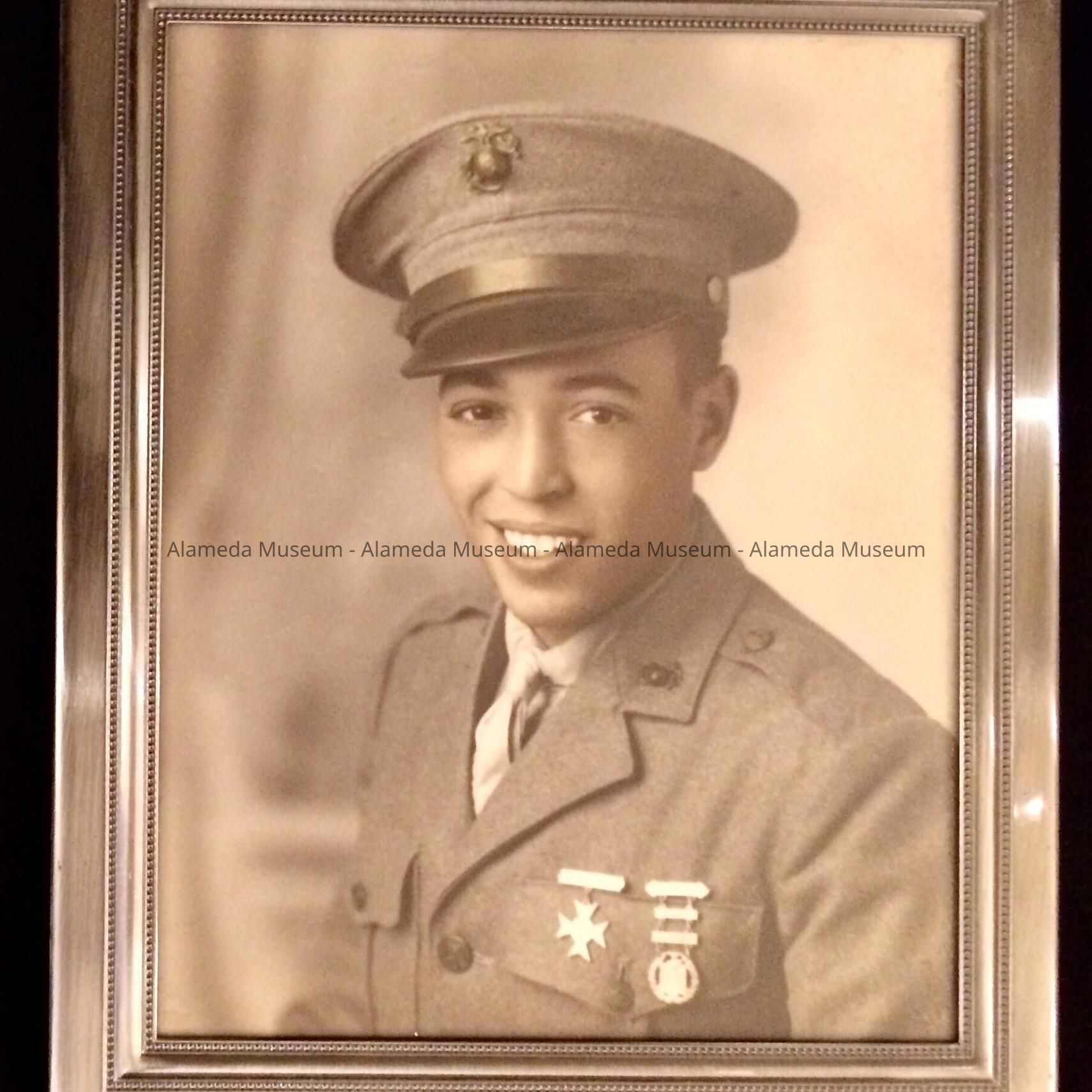 History of Object: Photographs of Harold Gonsalves as a child as well as an adult; two of them show him in his USMC uniform.