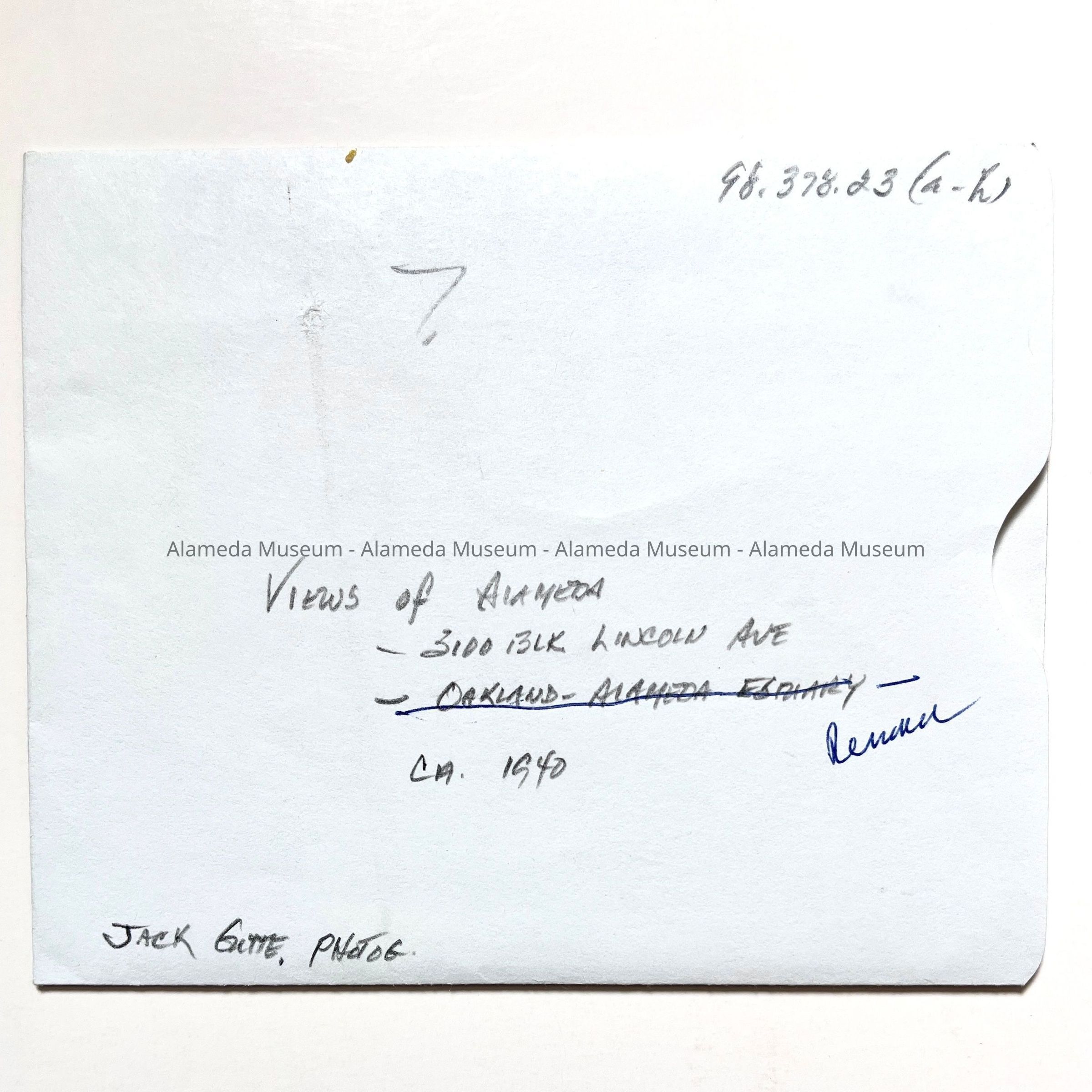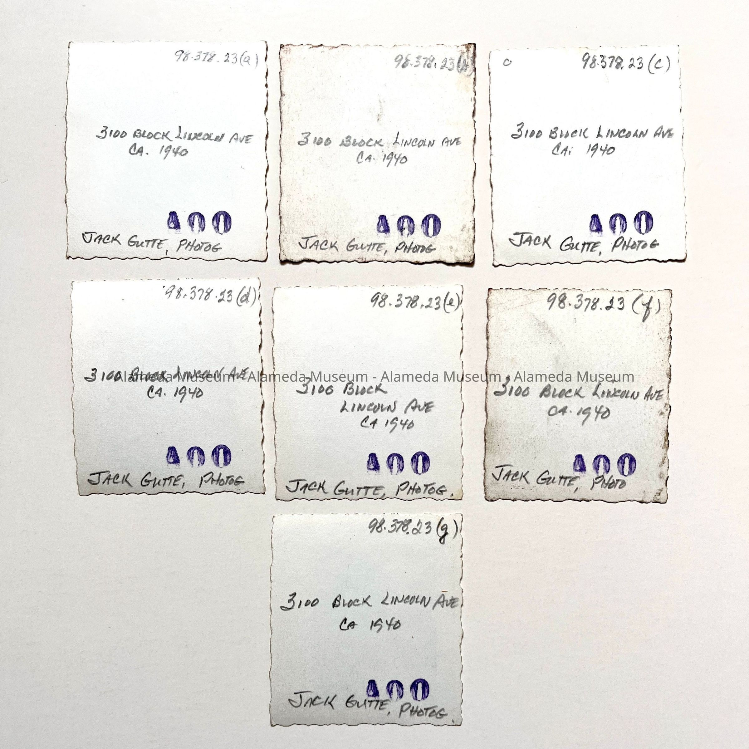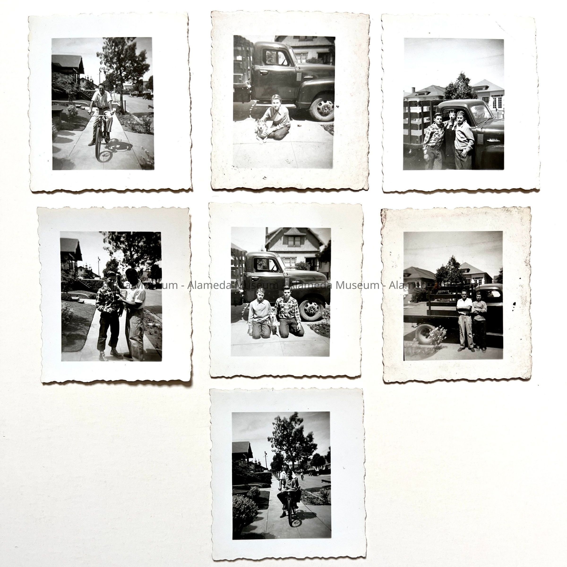 History of Object: Set of eight photographs, seven of which depict neighborhood children in the 3100 block of Lincoln Avenue; one image is a view of the OaklandAlameda estuary.