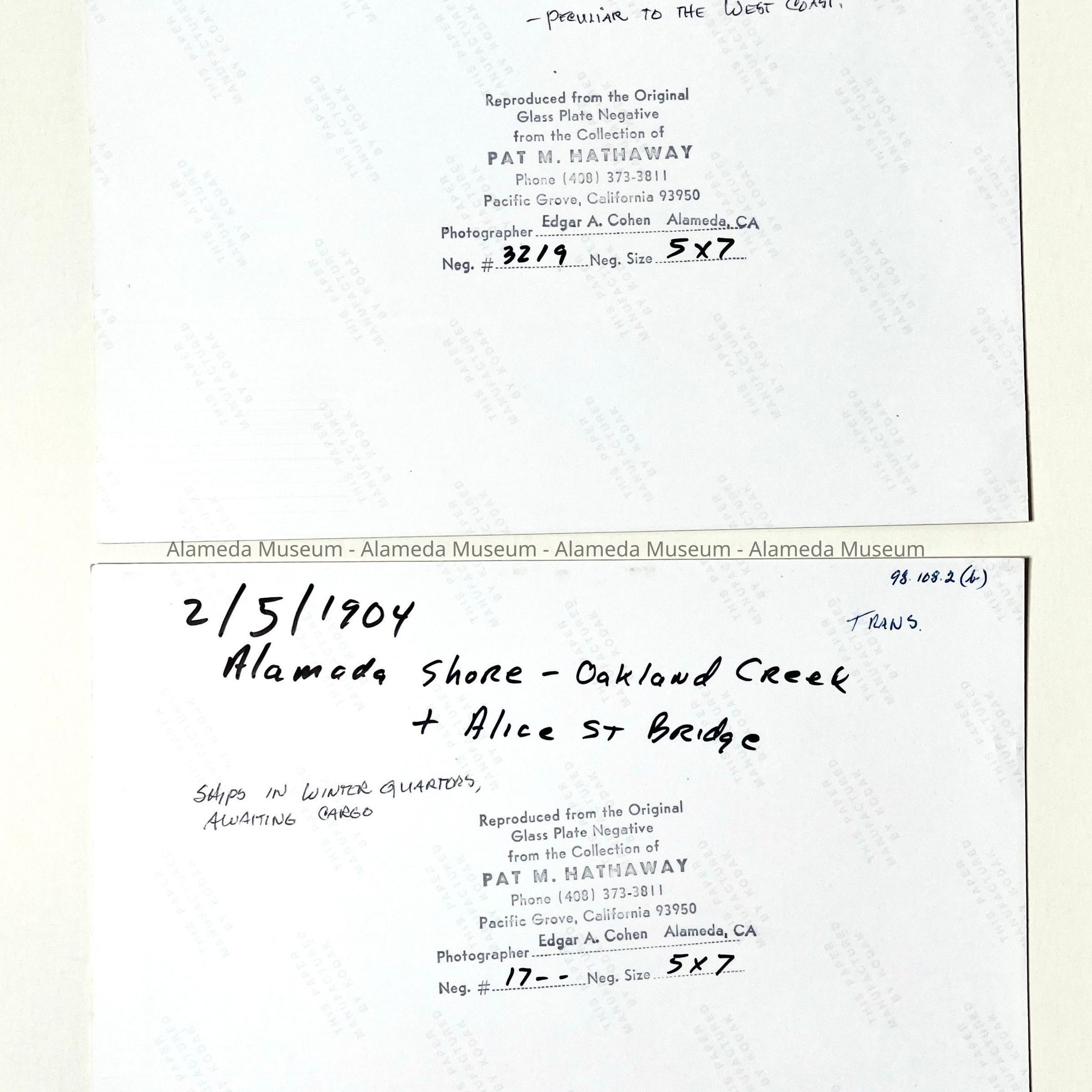 Acquired from: Pat Hathaway Hist. Photo. Co.