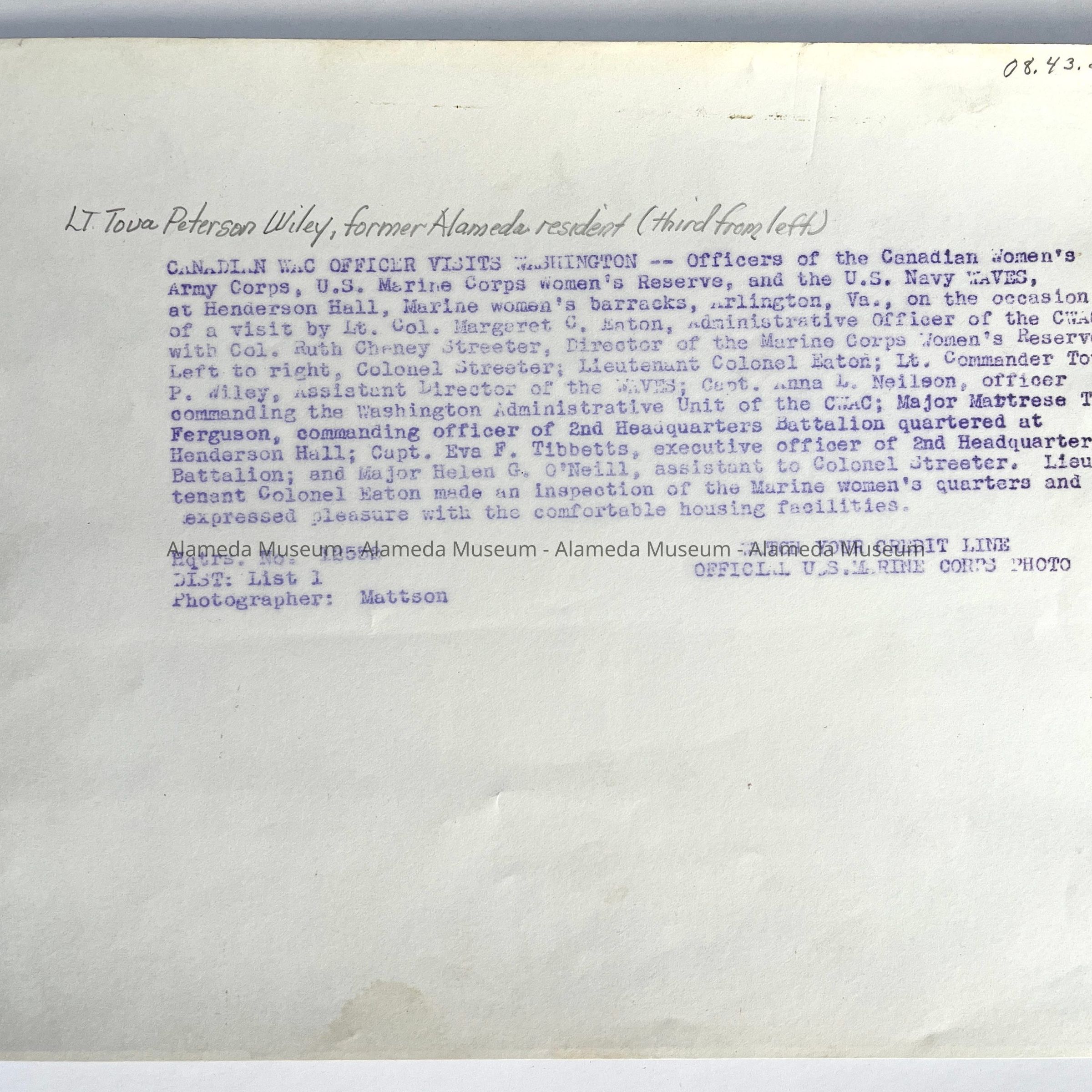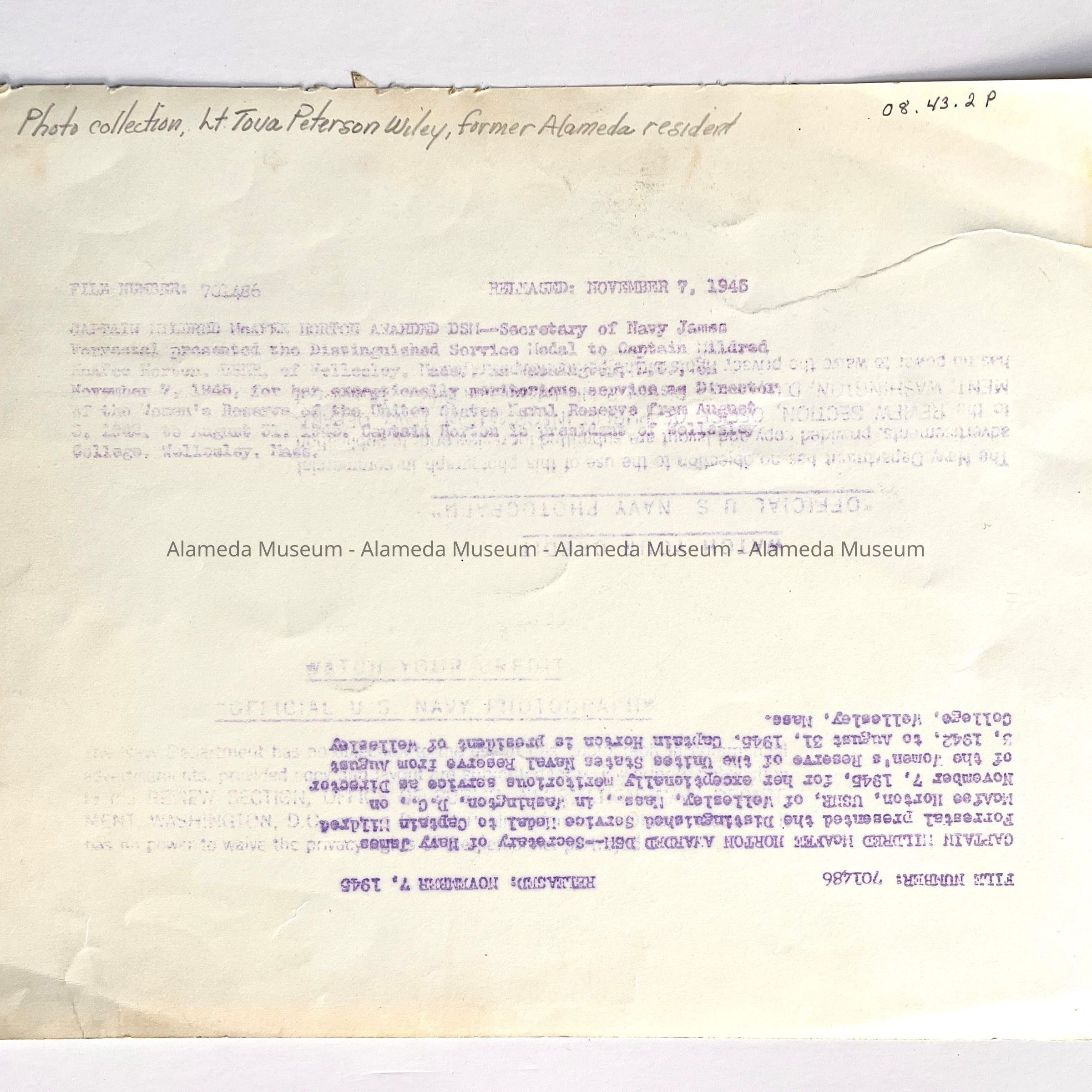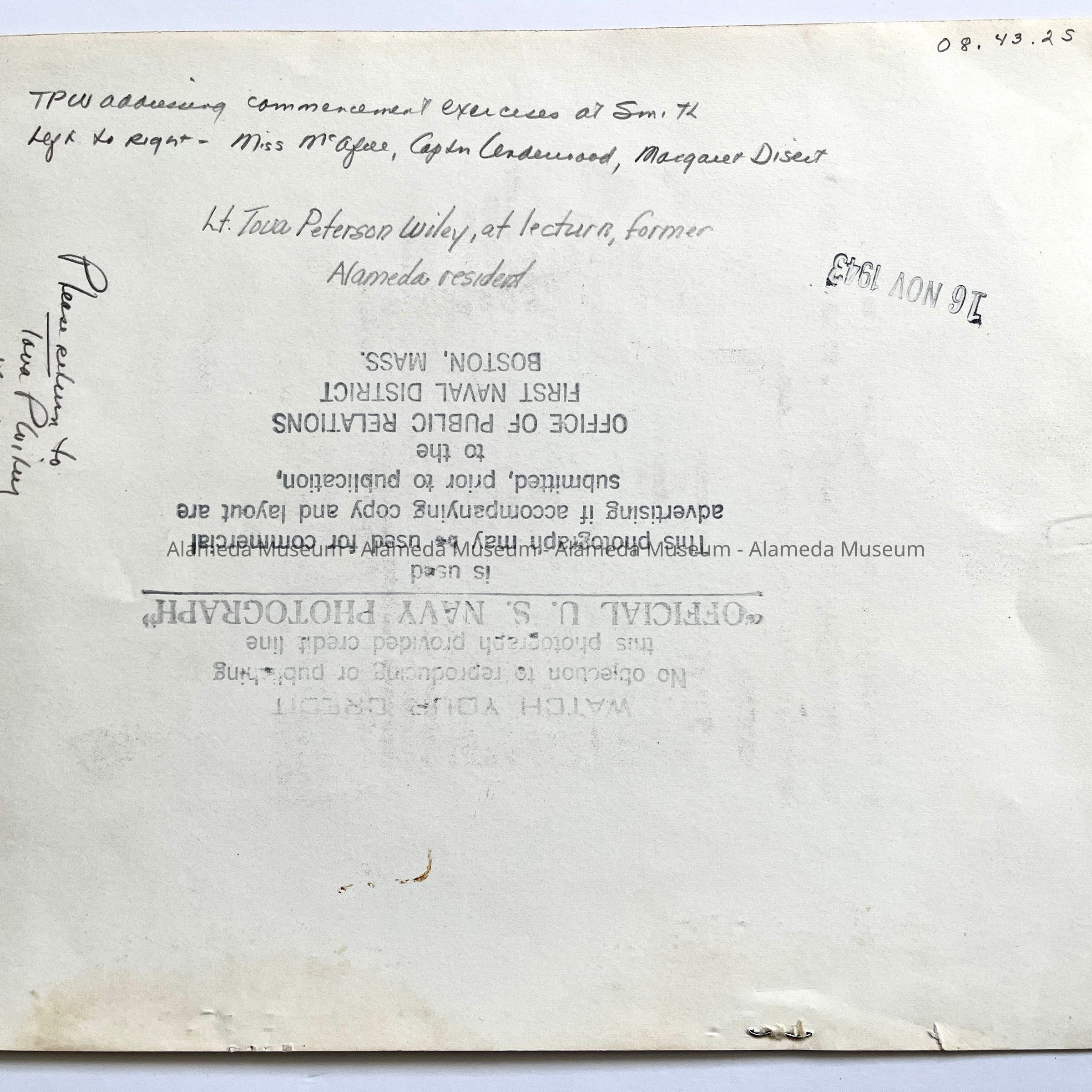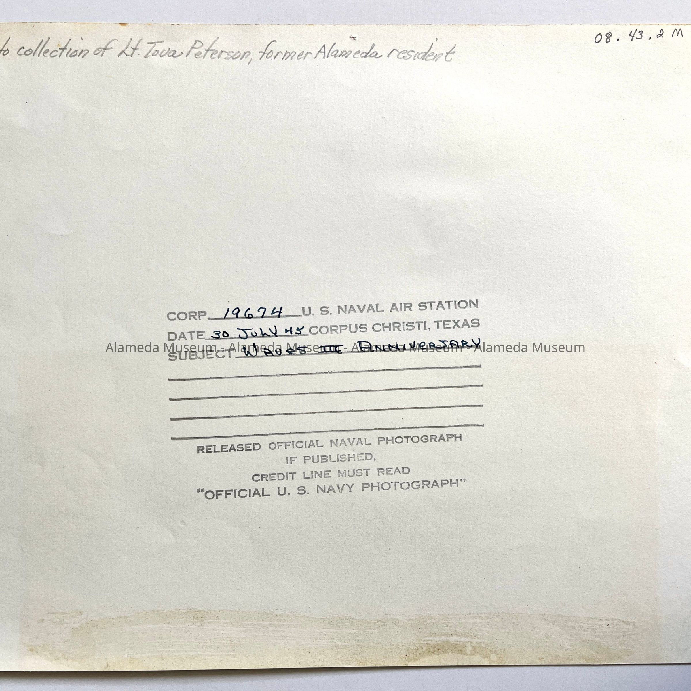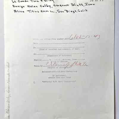 Photos of Naval Officer Tova Petersen Wiley, 1941-1945Entry/Object ID