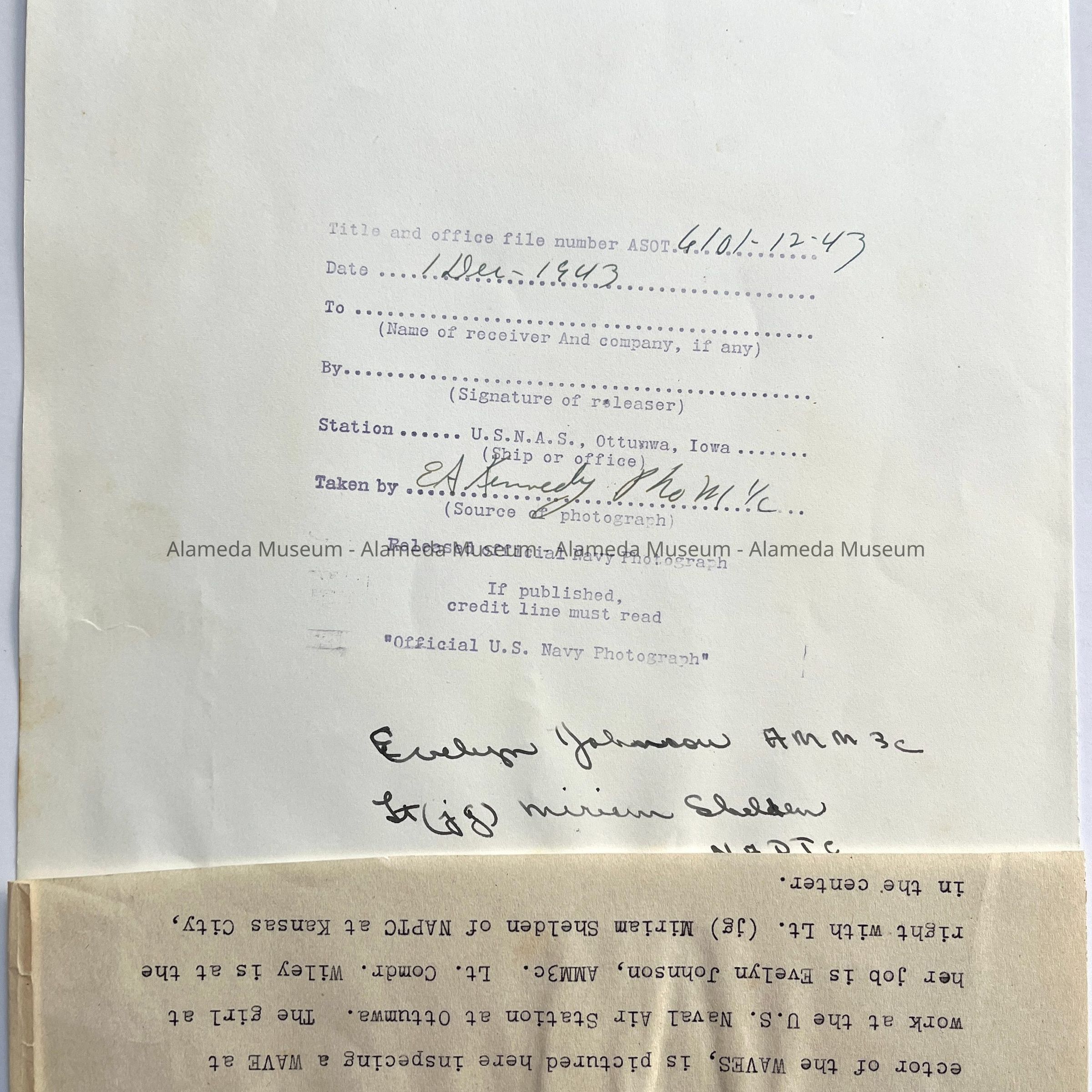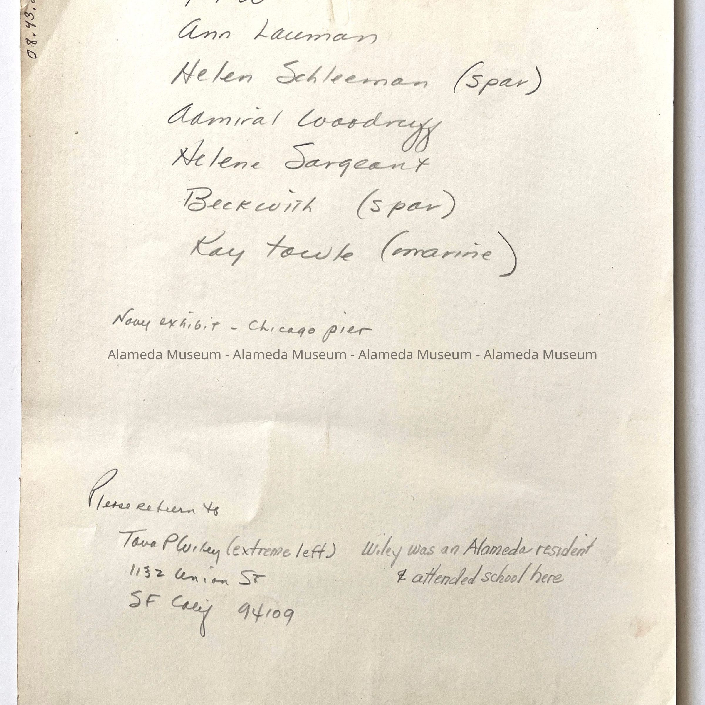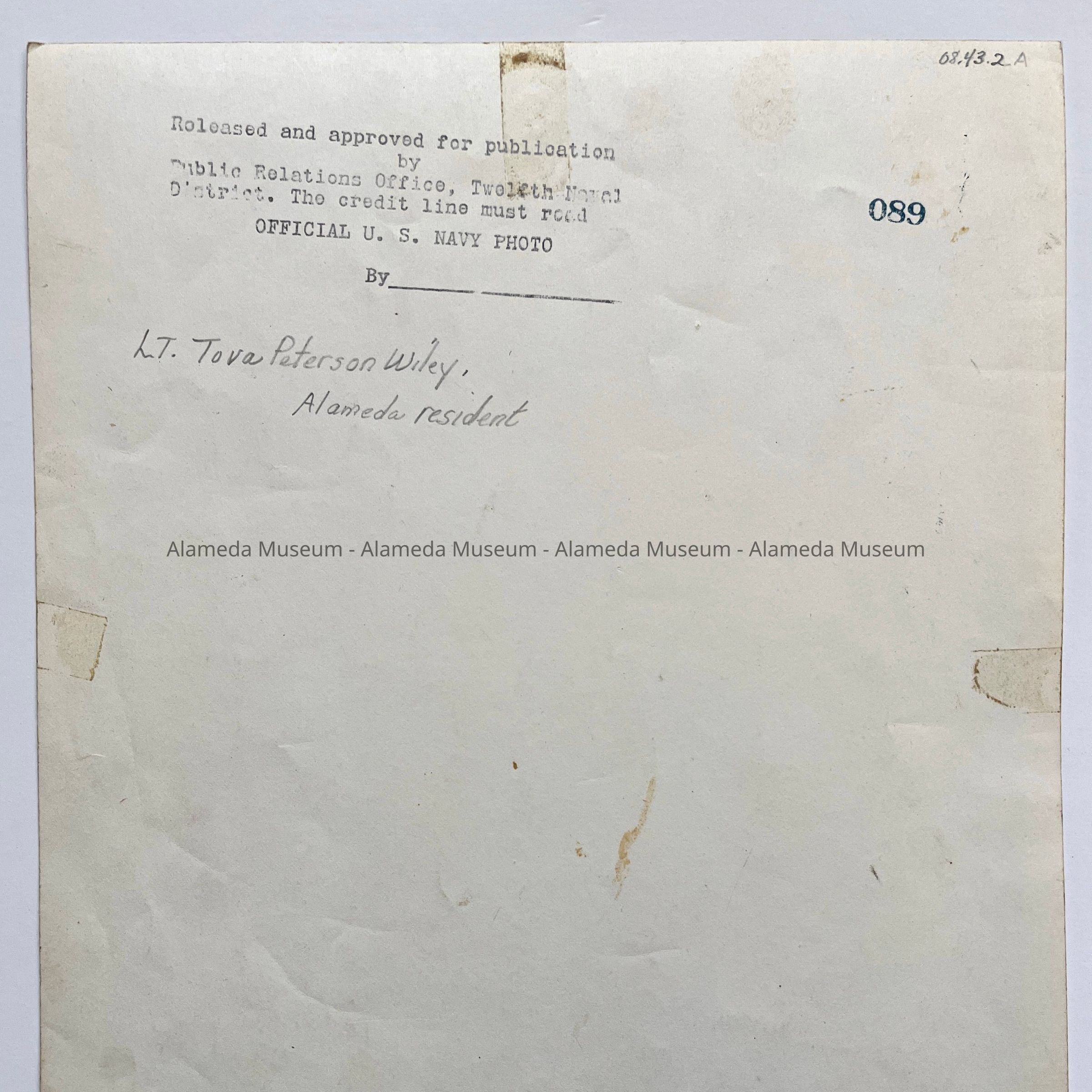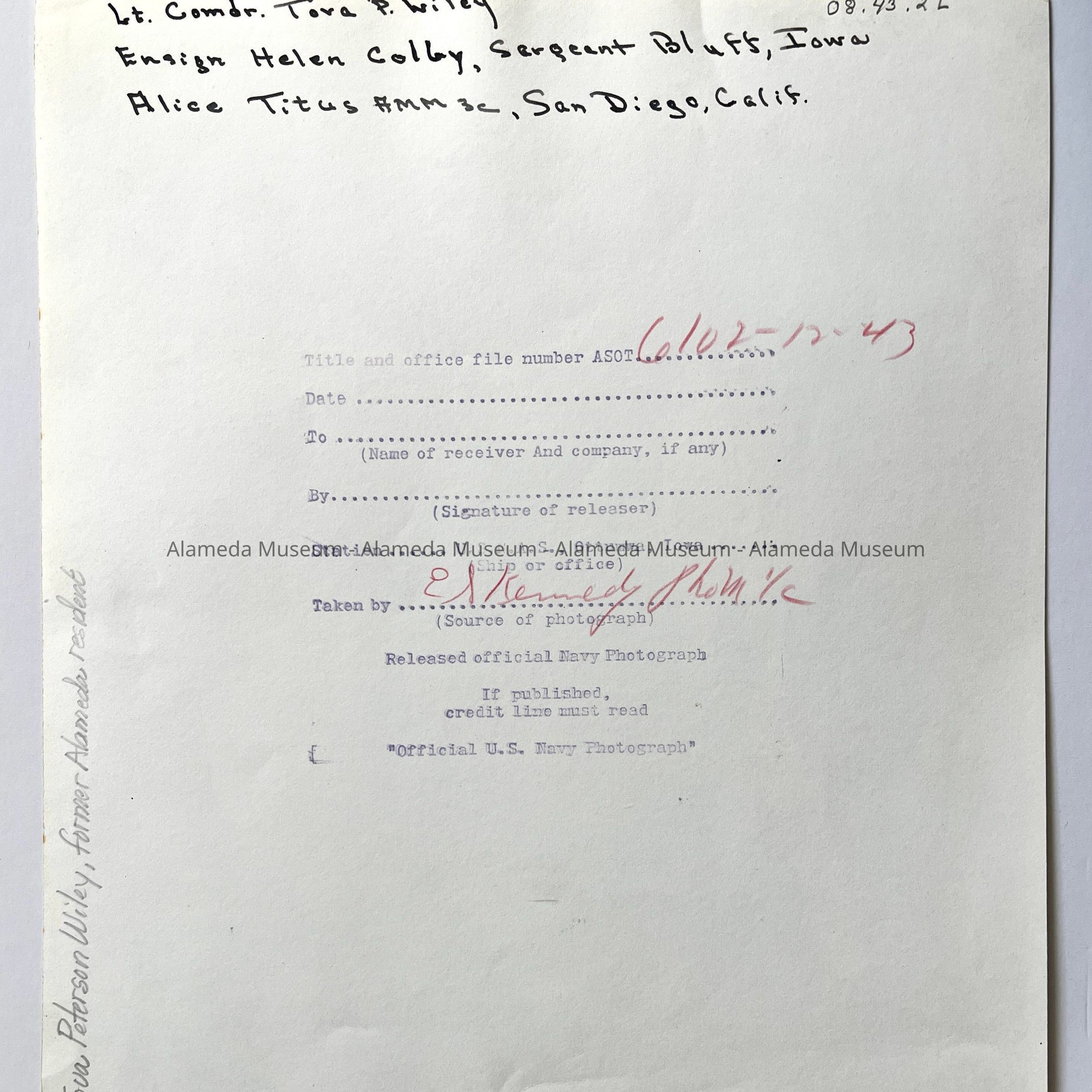 Photos of Naval Officer Tova Petersen Wiley, 1941-1945Entry/Object ID