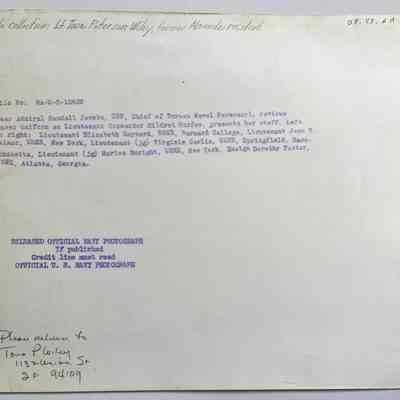 History of Object: A COLLECTION OF PHOTOGRAPHS DEPICTING NAVAL OFFICER TOVA PETERSEN WILEY AT VARIOUS EVENTS DURING WORLD WAR-II.