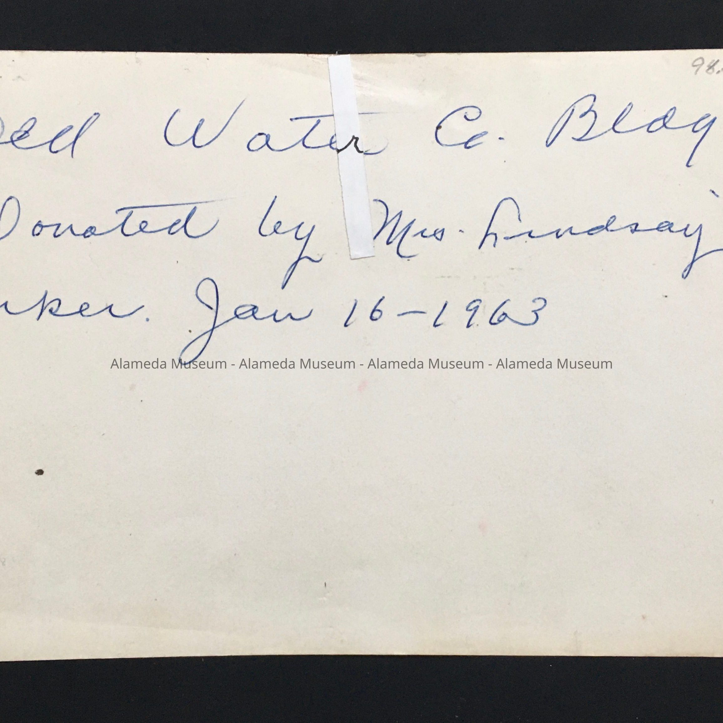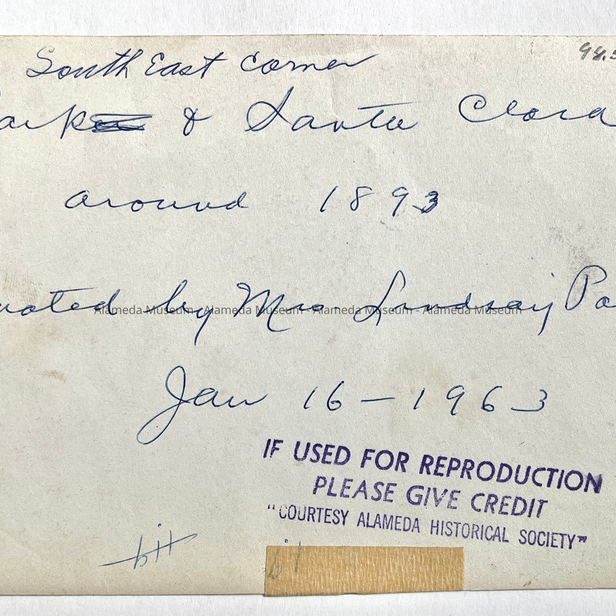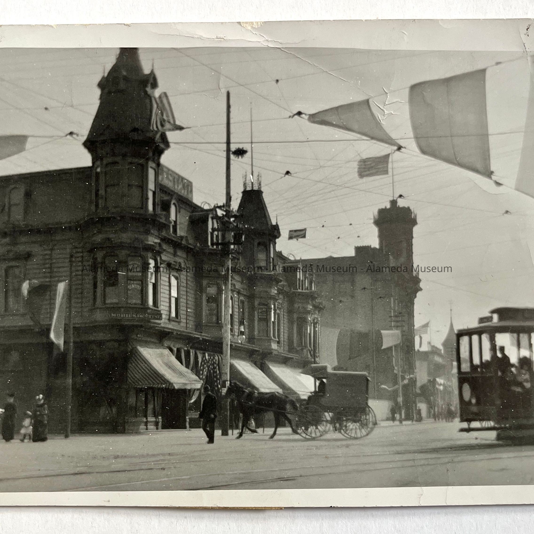 History of Object: Two views of Alameda: #a - Water company building on Park Street; #b - Southeast corner of Park Street and Santa Clara Avenue business district.
