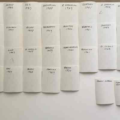 Description: A collection of 89 glossy black-and-white photos of head-and-shoulders of men, all dressed formally, with black or white bow-tie (except for one polka-dot and one ordinary tie), some wearing a medal, and negatives for 4 of these. Most photos have identification and a year written in pen, ballpoint, or marker the bottom margin, as well as on the reverse in pencil and black marker.