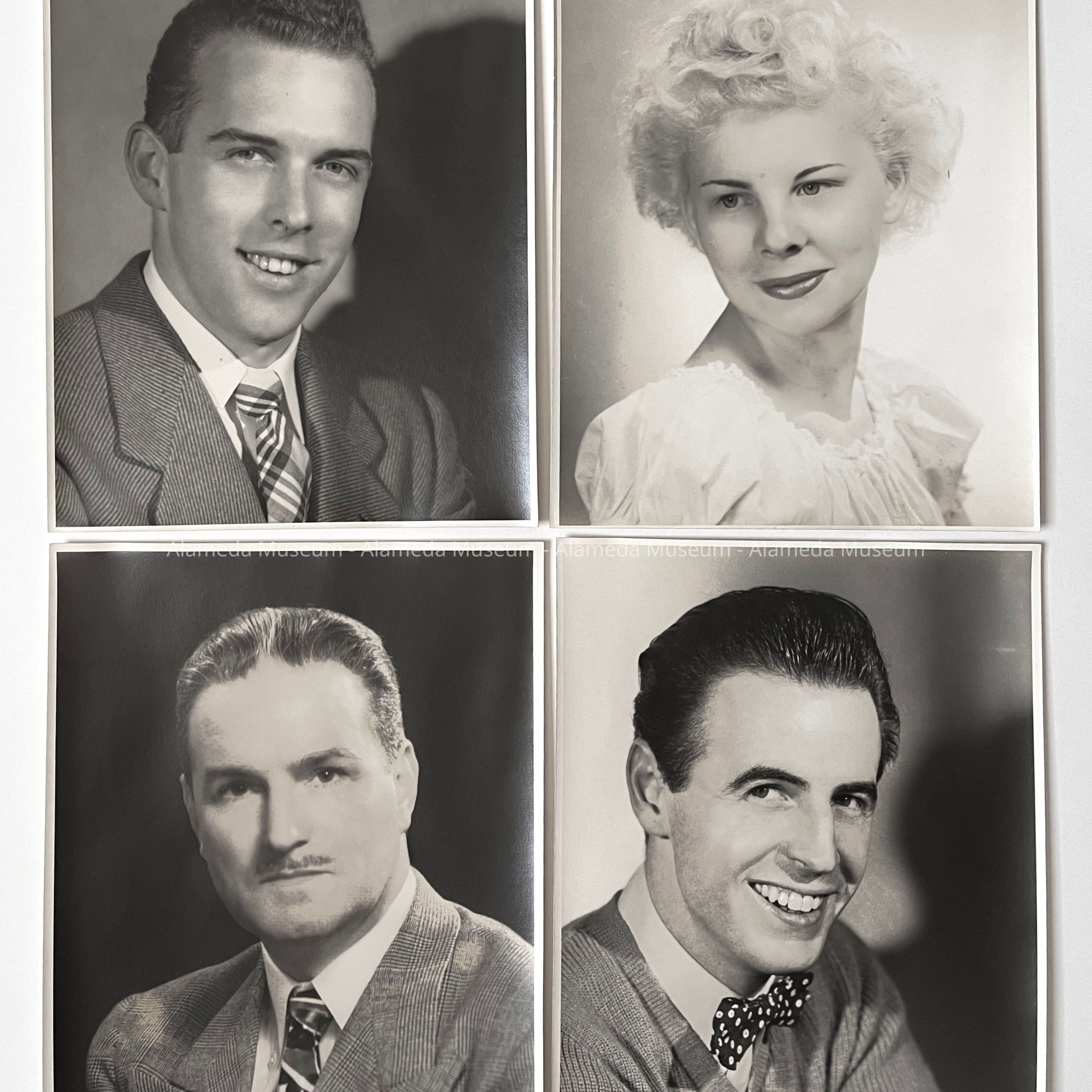 History of Subject: INDIVIDUAL PORTRAITS OF VARIOUS ACTORS AND ACTRESSES WHO PERFORMED IN PLAYS AT THE ALAMEDA LITTLE THEATRE IN THE 1940's. PHOTO "E" IS OF THE LATE DORIS HASLETT GOODMAN, WHO WAS A MEMBER OF AN EARLY ALAMEDA FAMILY. DORIS WAS ACTIVE IN VARIOUS PRODUCTIONS WHEN IT BECAME KNOWN AS THE ALTARENA THEATRE.