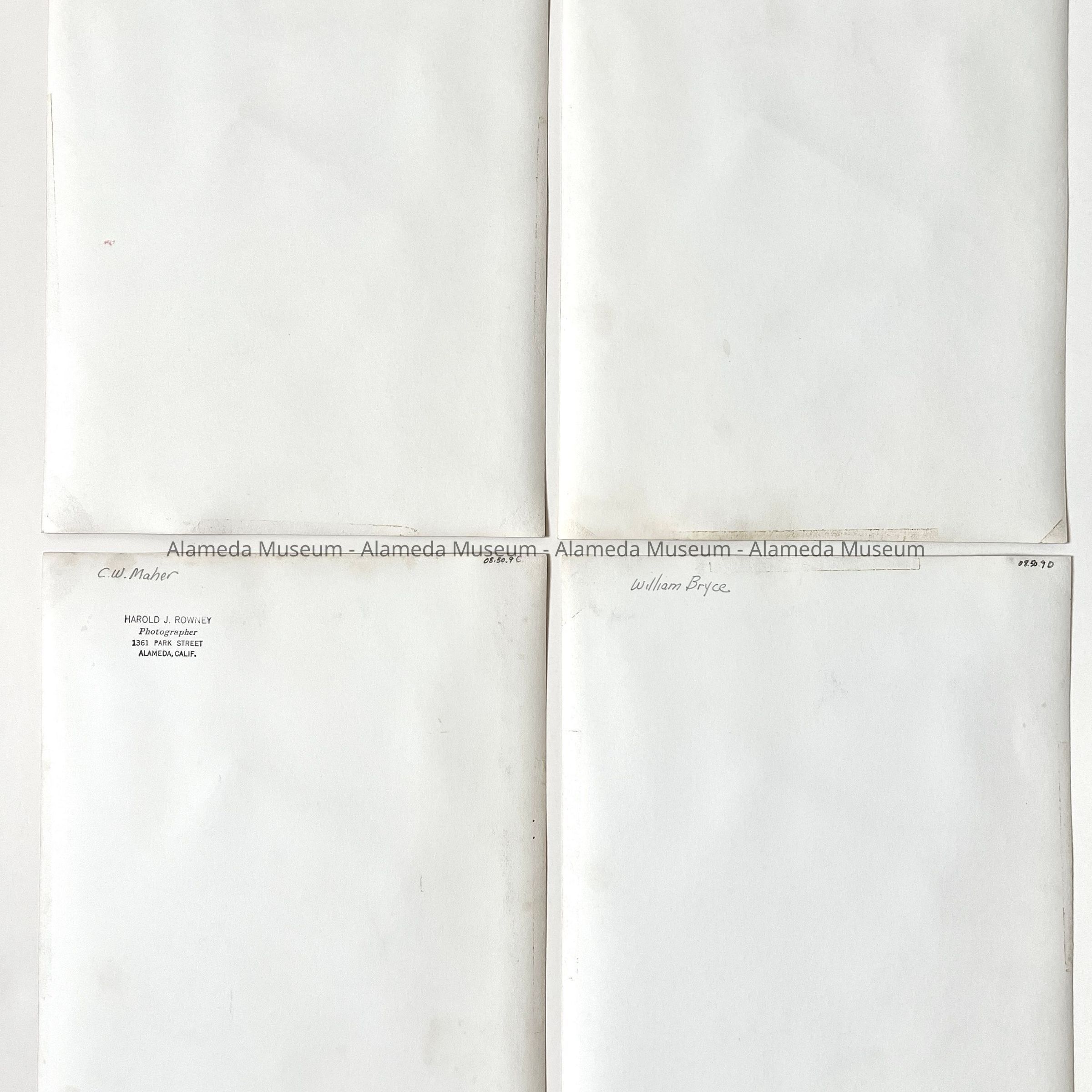 Description: BLACK-AND-WHITE PHOTOGRAPHIC PORTRAITS. IN ALL BUT ONE THEY ARE IDENTIFIED WITH NAMES OF PERSONS. THREE OF THE COLLECTIONS ARE SIGNED, "HAROLD I ROWNEY, PHOTOGRAPHER, 1361 PARK STREET, ALAMEDA, CALIF."