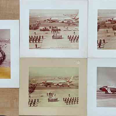 COLORED PHOTOGRAPHS, MOUNTED ON WHITE-COLORED HEAVY STOCK PAPER BACKING. SIGNED ON REVERSE SIDES, "NAVAL AIR STATION, ALAMEDA, CALIF. OFFICIAL PHOTO(S)."