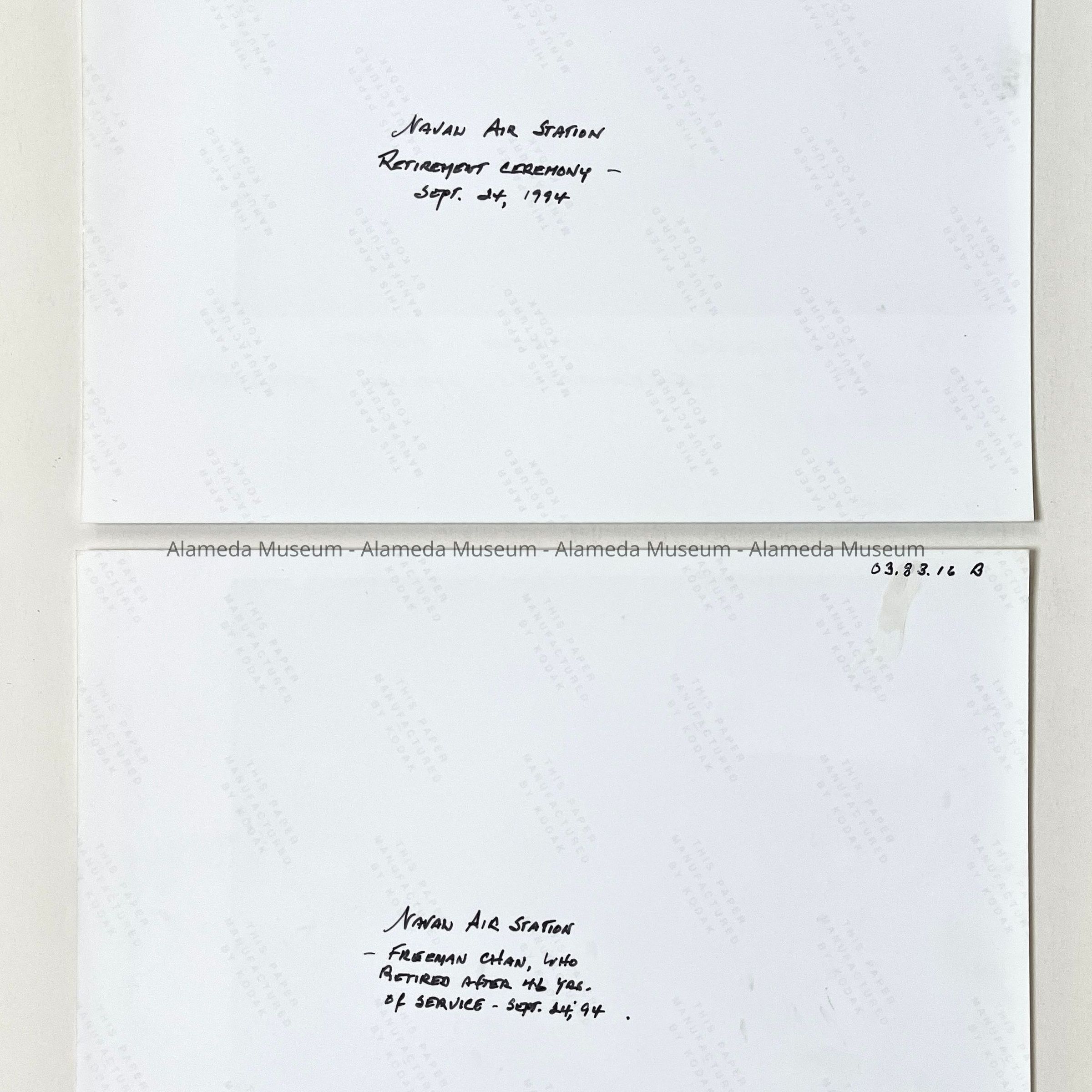 Photos of retirement ceremony, Naval Air Station, Alameda, 1994Entry/Object ID