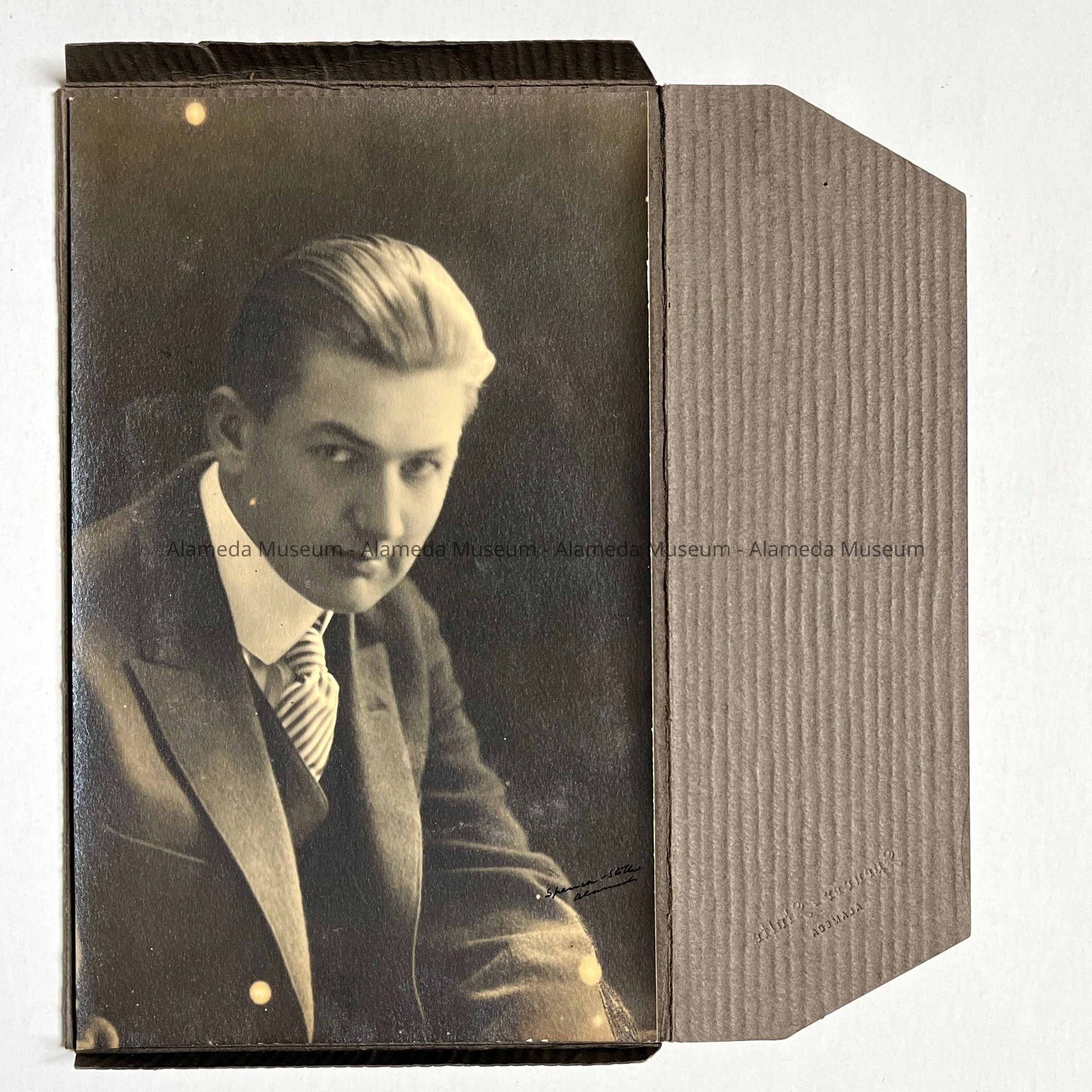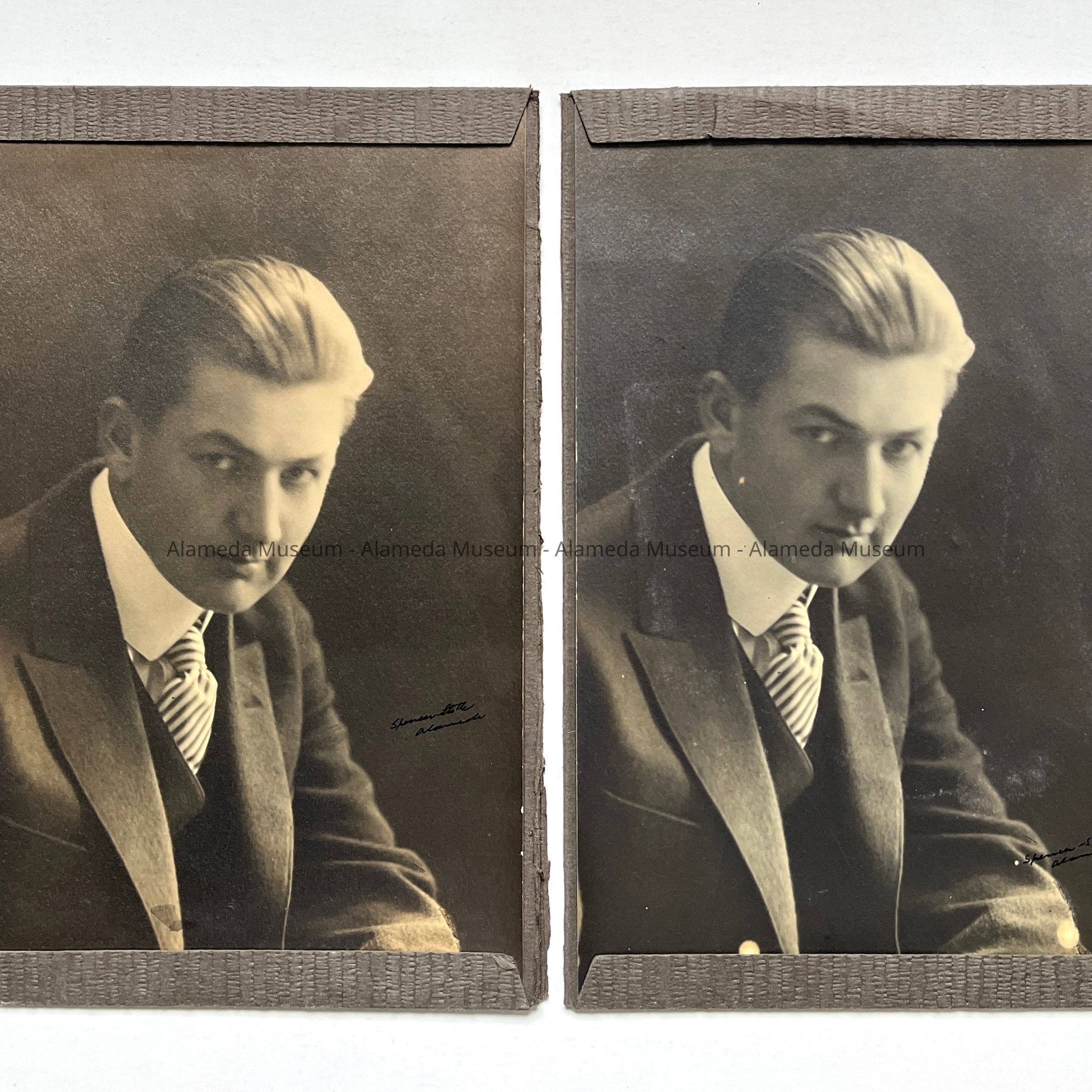 HISTORY OF OBJECT: PHOTOGRAPH OF ROBERT AMES (1900-1982), LIFELONG RESIDENT OF ALAMEDA. IT WAS TAKEN BY THE PROFESSIONAL FEMALE PHOTOGRAPHERS, SPENCER AND STOLTE.