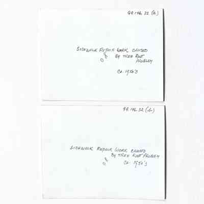 Photos of sidewalk repair of tree root damage, c 1950sEntry/Object ID