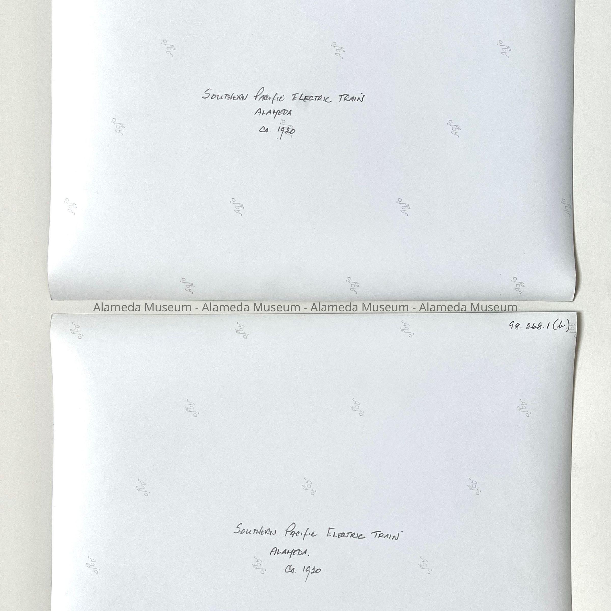 Photos of Southern Pacific electric train in the Alameda railroad yard, c. 1920Entry/Object ID