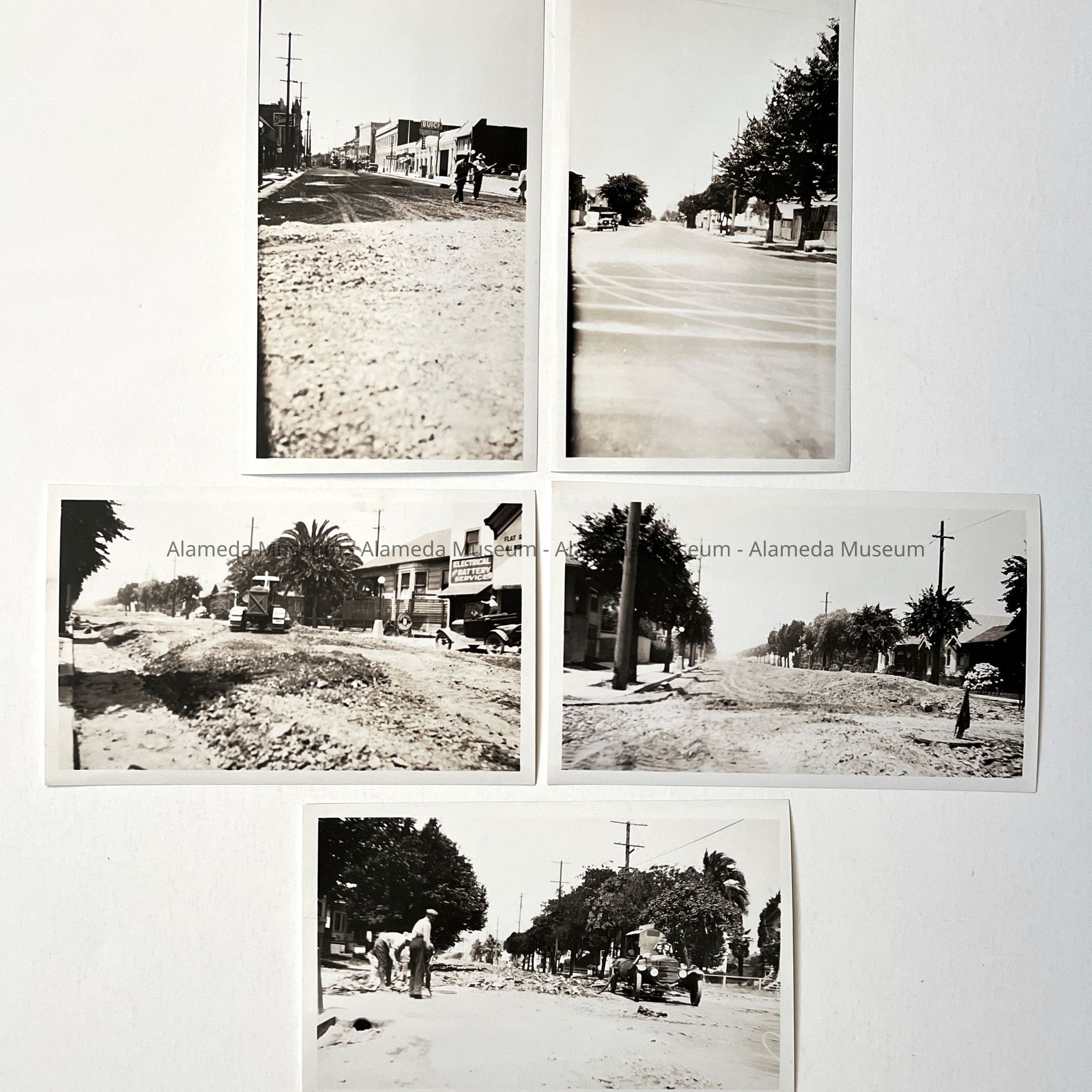 History of Object: Street repair views: #a - Santa Clara Ave. looking West to Everett St..; #b - Buena Vista Ave. looking West at Park St.; #c - Buena Vista Ave. looking West at Nason St.; #d - Buena Vista Ave. looking West at Eighth St.; #e - an unidentified street.