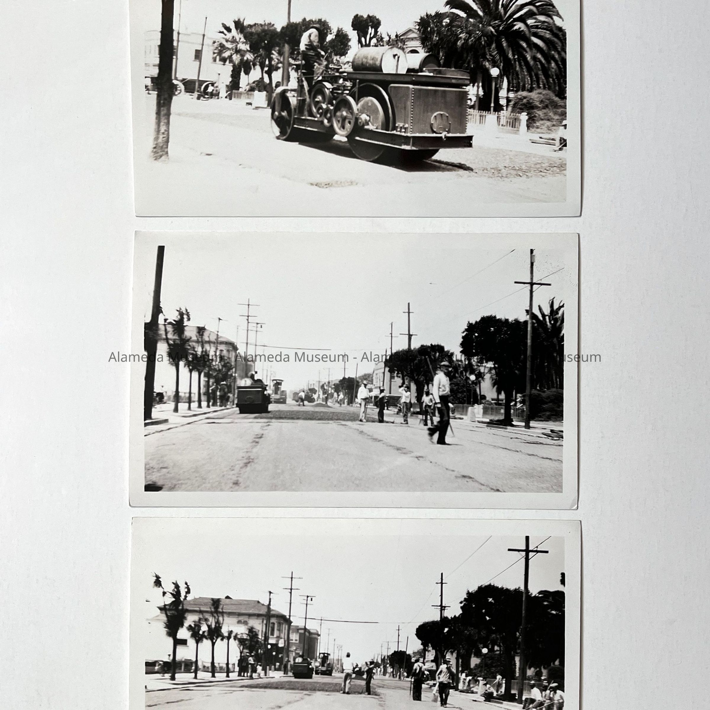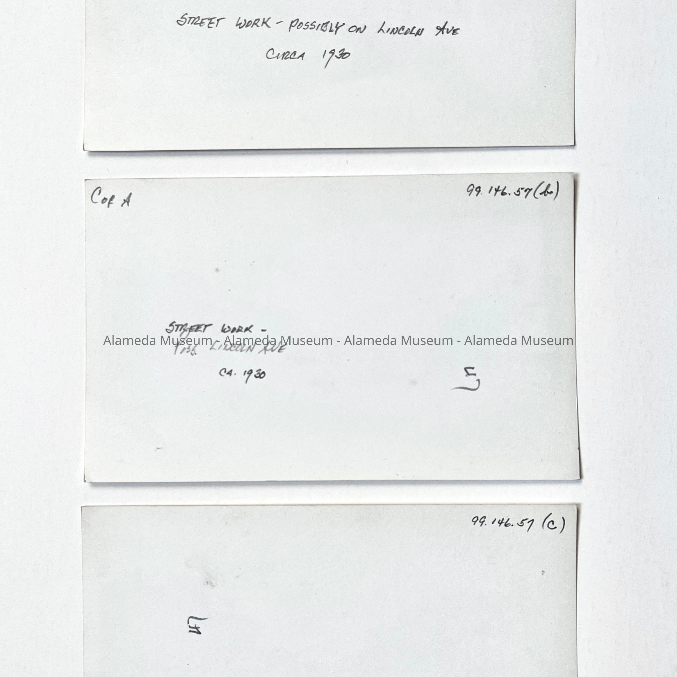 History of Object: Three views of street resurfacing activity, possibly on Lincoln Avenue.