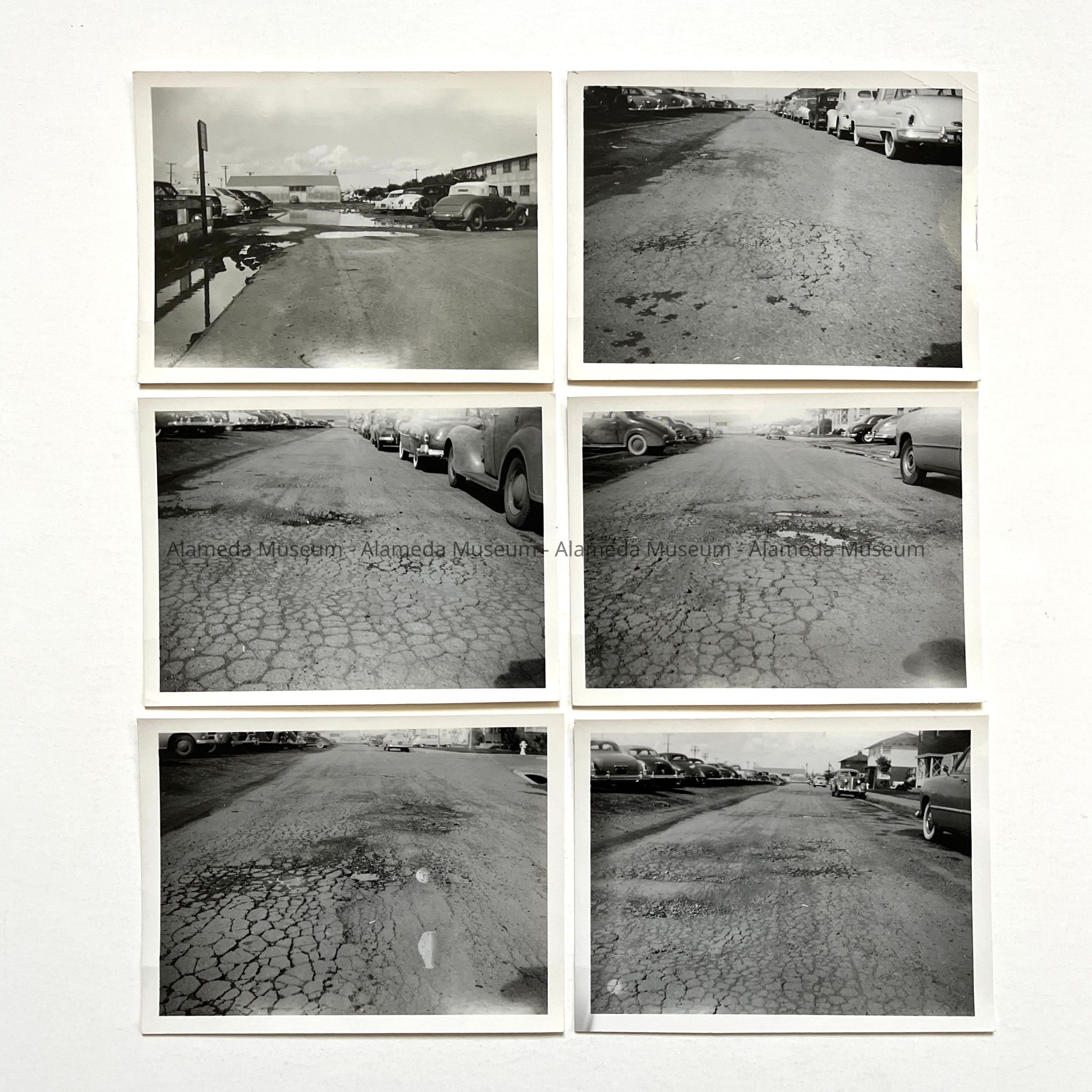 History of Object: Six views of street surfacing problems to be corrected along Main Street and Pacific Avenue in the West End.