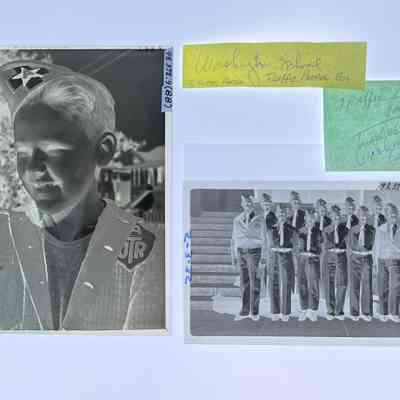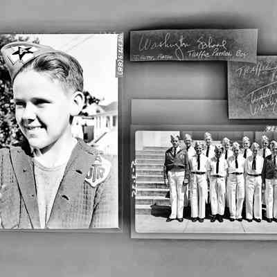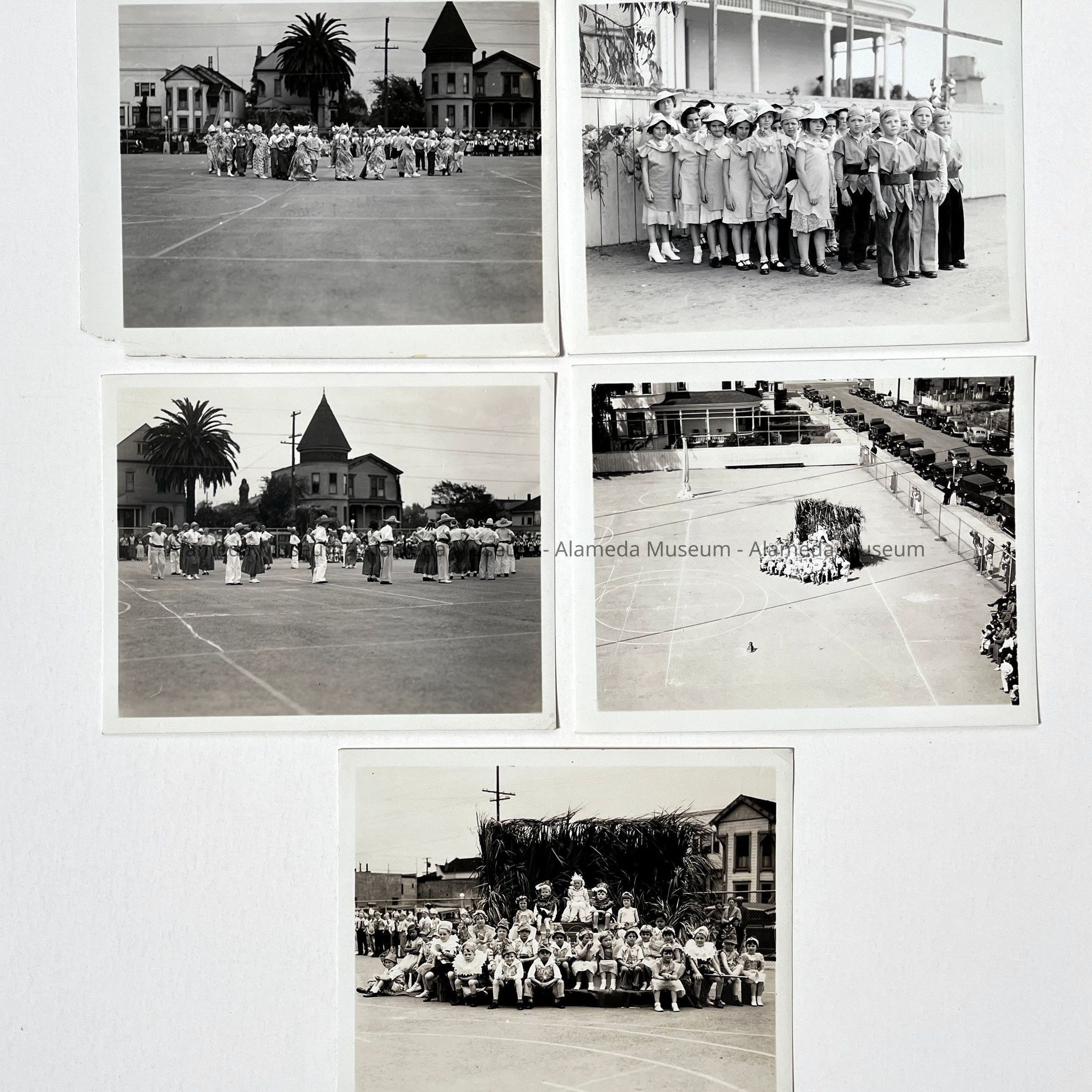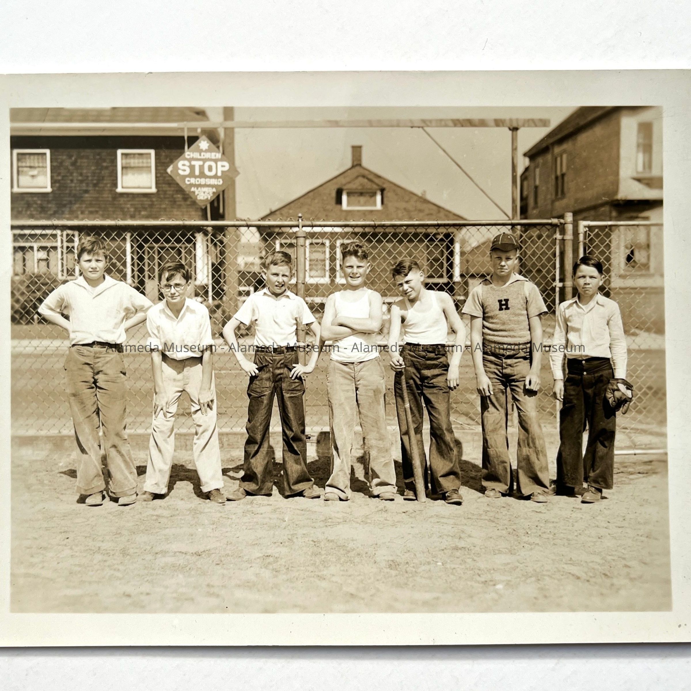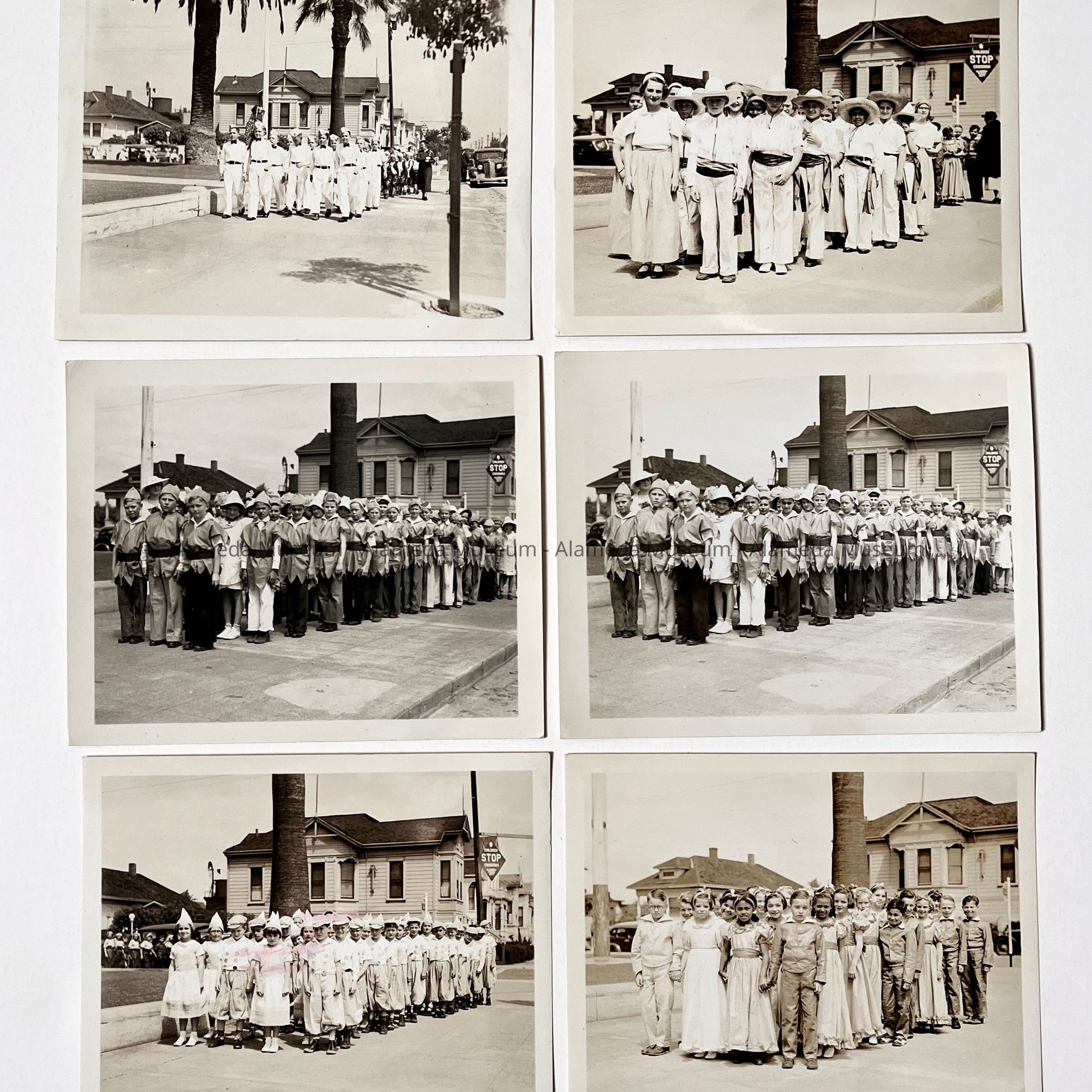 History of Object: Various views of student activity at Alameda Schools. Largely in 1936: #a-c: informal groups of boys; #d - 8th Grade baseball champions; #e - Mastick school traffic patrol marching; #f, h - track stars (identical images); #(e), g, k, m, n, x – Mastick scool May Day pageant; #i - 8th Grade baseball champions; #j - baseball players; # l, p, o, r, s: May Day at Mastick School. #t-u: traffic patrol boys in uniform; #v-W - 8th Grade baseball champions (identical images, and same as #d); #y - graduating class, mid-1930's; #z - photographic negative of #y. #AA (neg.) boys in traffic patrol uniforms it provided by Gutte's Association Gas Station; #BB (neg.): portrait of youth in traffic uniform.