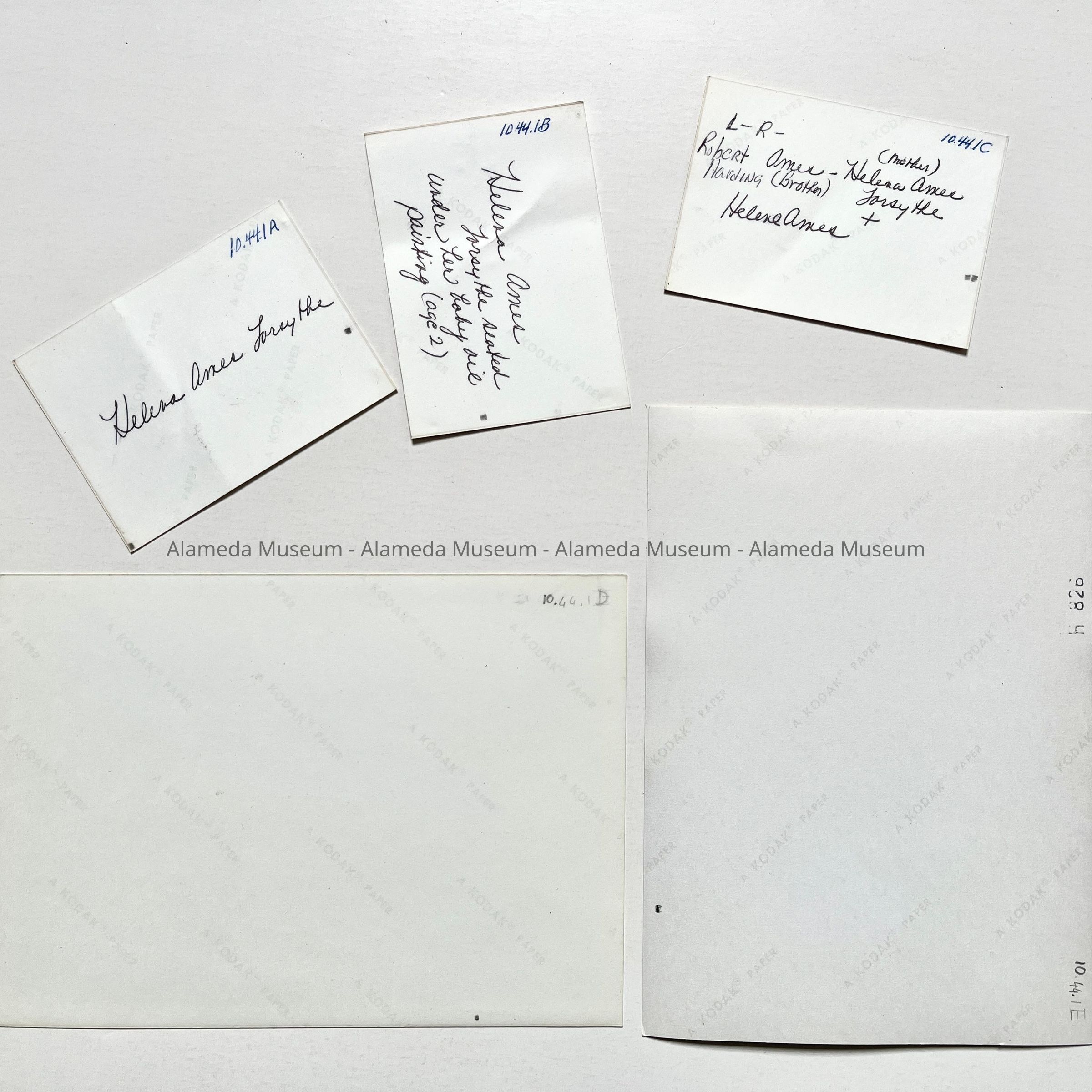 PHOTO A: HELENA AMES FORSYTHE (MOTHER). PHOTO B: HELENA AMES FORSYTHE AND BABY. AN OIL PAINTING, NOW IN THE ALAMEDA MUSEUM COLLECTION.