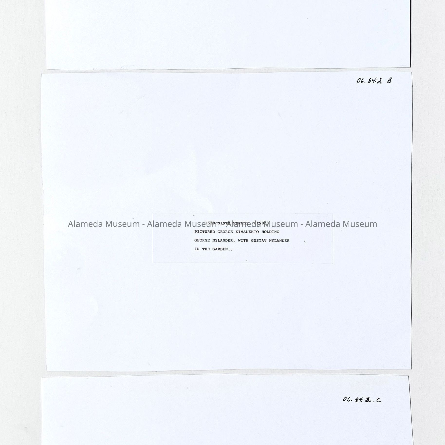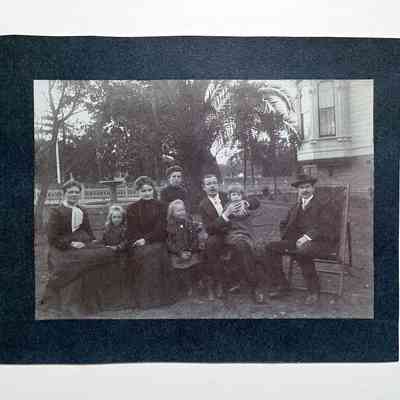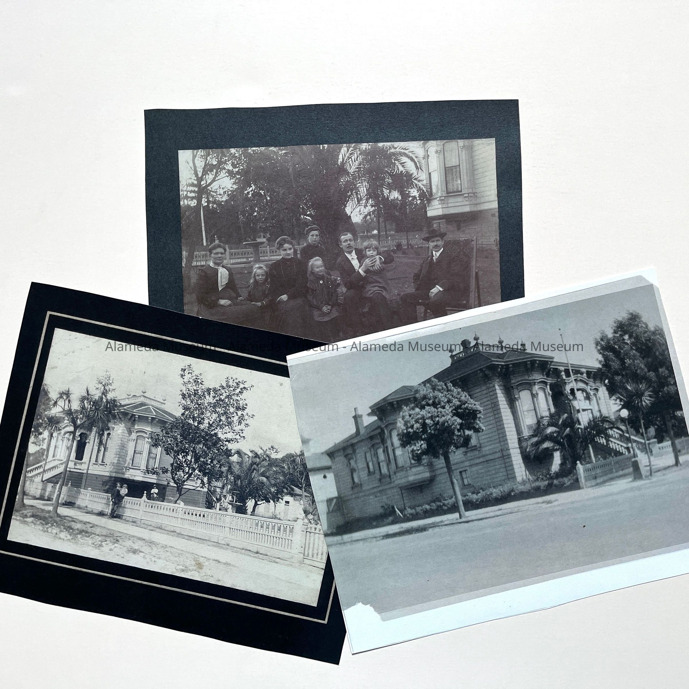 History of Object: Various views of the Nylander residence located at 1630 Ninth Street: A) Nylander family members seated in their garden; B) exterior view of the residence; C) another exterior view of the residence.