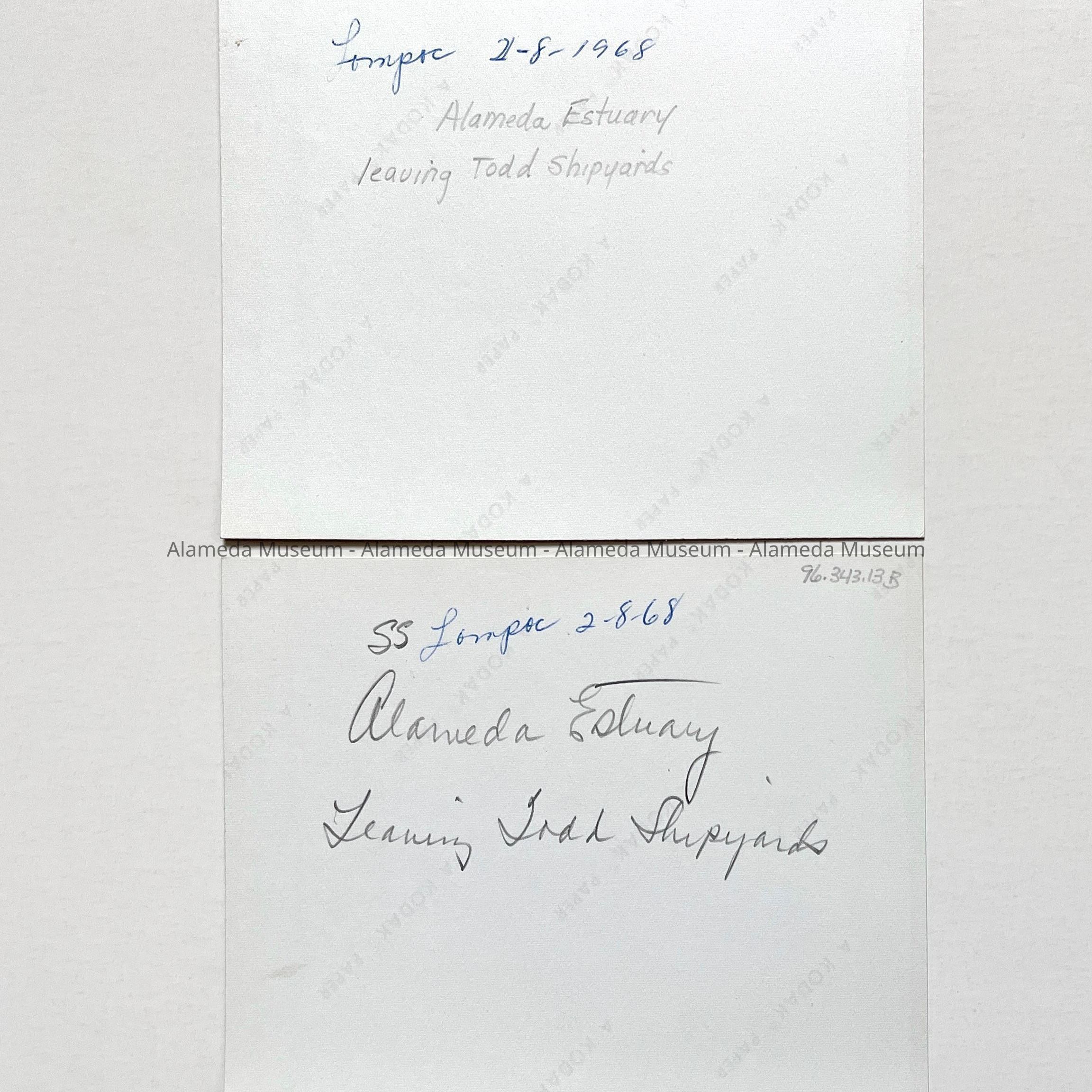 PHOTOGRAPHS DEPICTING THE "S S LOMPOC," LEAVING TODD SHIPYARDS, ALAMEDA-OAKLAND ESTUARY, ALAMEDA, CALIFORNIA, FEBRUARY 8, 1968