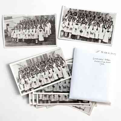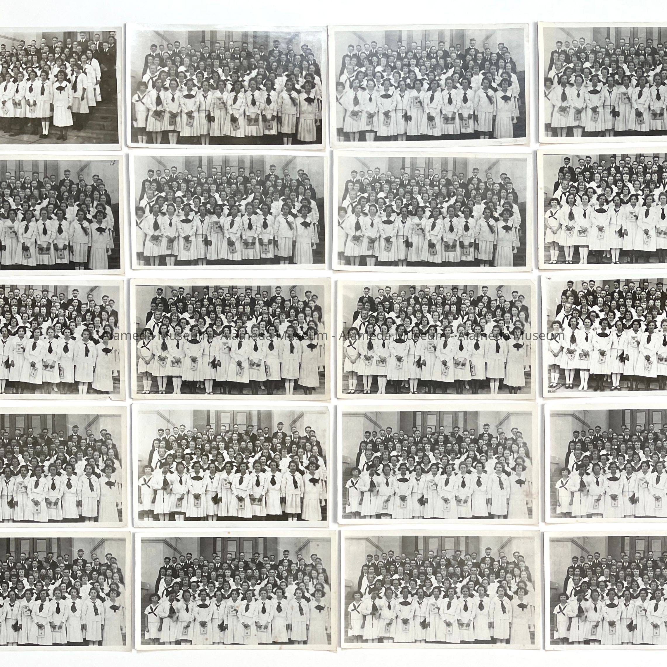 History of Object: Four views of the Washington School graduating class of 1922 posed upon the entrance steps. The students are unidentified.