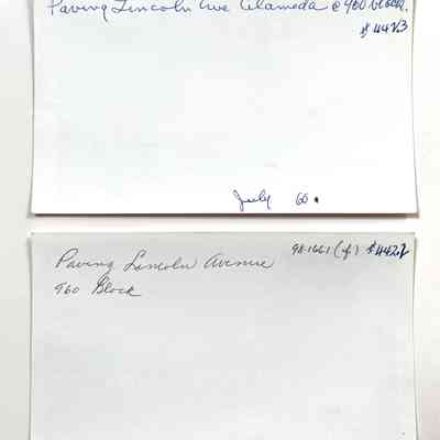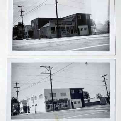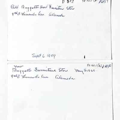 History of Object: Various views of Alameda: #a - edge of Washington Park; #b - Baggett's Used Furniture Store - old structure - at 9th St. and Lincoln Ave.; #c - Baggett's Used Furniture Store - new structure, at same location; #d - corner of Park St. & Lincoln Ave., site of removed S.P. Park St. Station; #e - paving of Lincoln Ave., the 900 block; #f - paving of Lincoln Ave.; #g - shoreline, showing the old Encinal Yacht Club in the distance; #h - rows of palms flanking Burbank St.; #i - same image as #h.