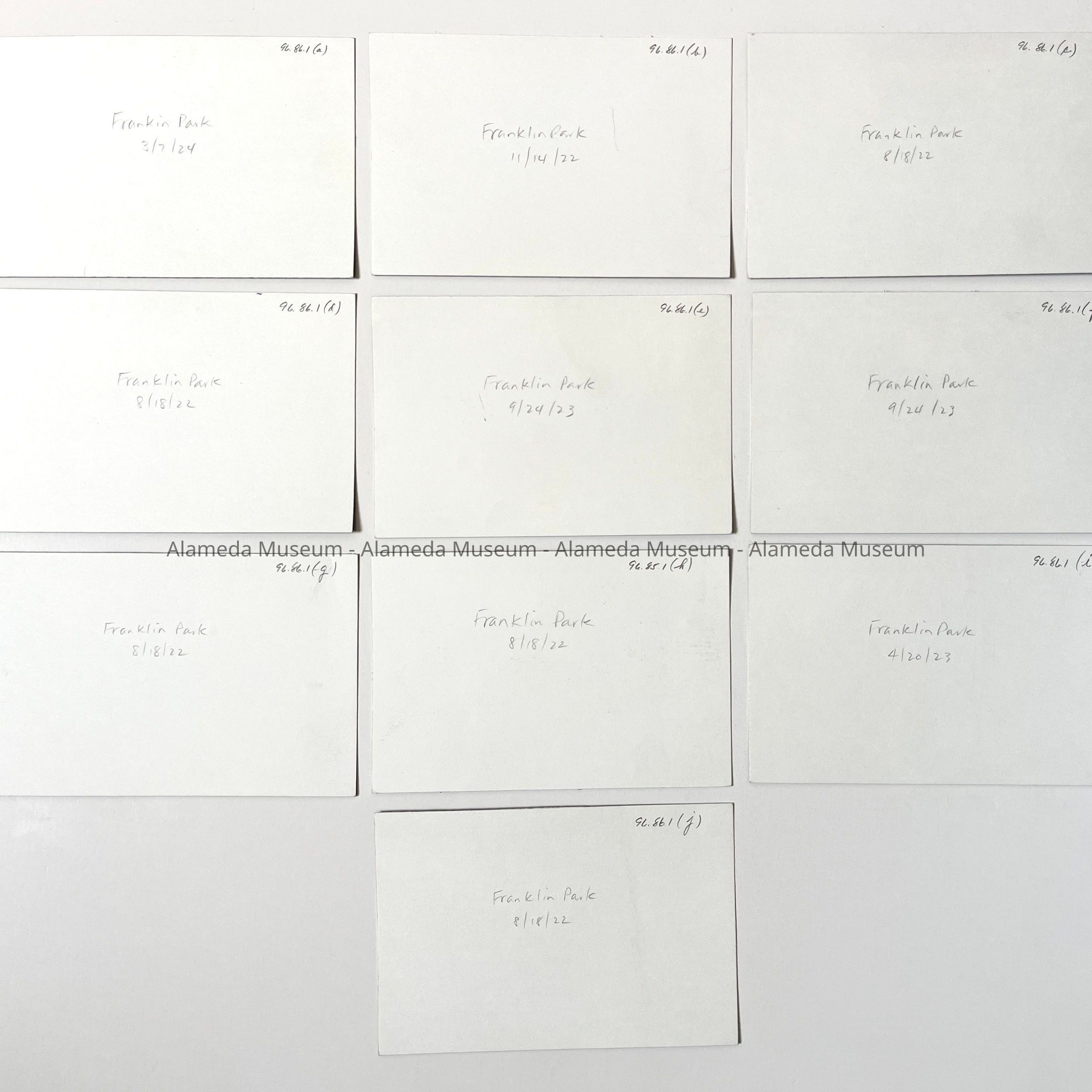 Description: Series of modern black/white contact prints, unmounted. Original photographers unknown. Prints were made by Dr. Vernon Rabbach of the Alameda Photography Society.