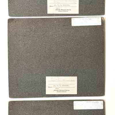 Description: Sepia-toned photos mounted on charcoal paperboards. Photographer unknown. Descriptive label affixed to lower margin; old catalog label glued to upper left margin of each. Nail holes are in all mounts.