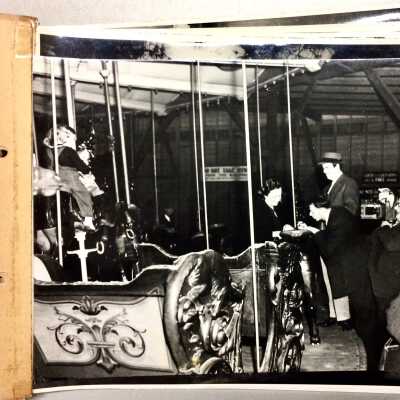 BLACK-AND-WHITE GLOSSY PHOTOGRAPHS, UNSIGNED. THE PHOTOS ARE BOUND WITH A METAL RINGLET ATTACHED TO A HEAVY PAPER STOCK THAT SERVES AS BINDING.