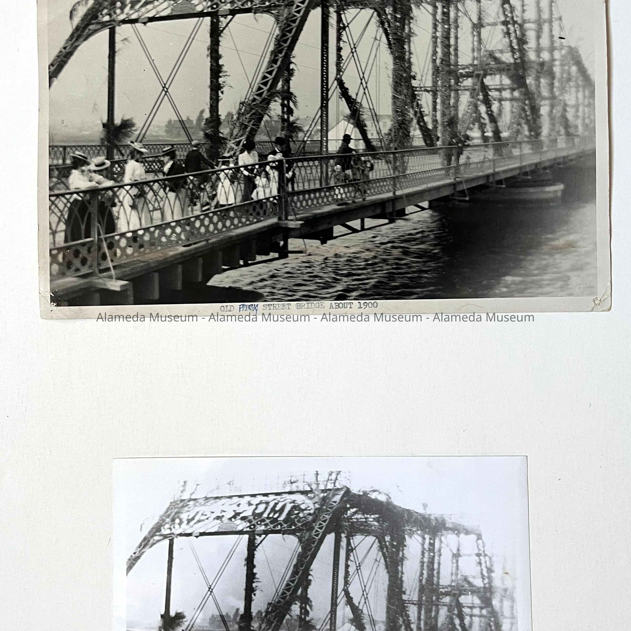 Photos view old Park Street Bridge with palm branches and crowd, c. 1900Entry/Object ID