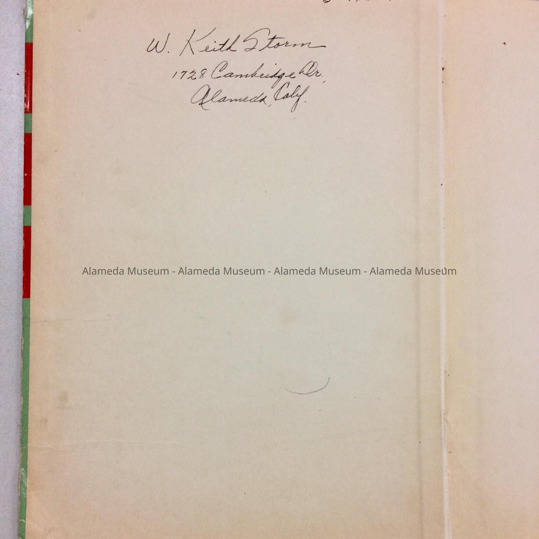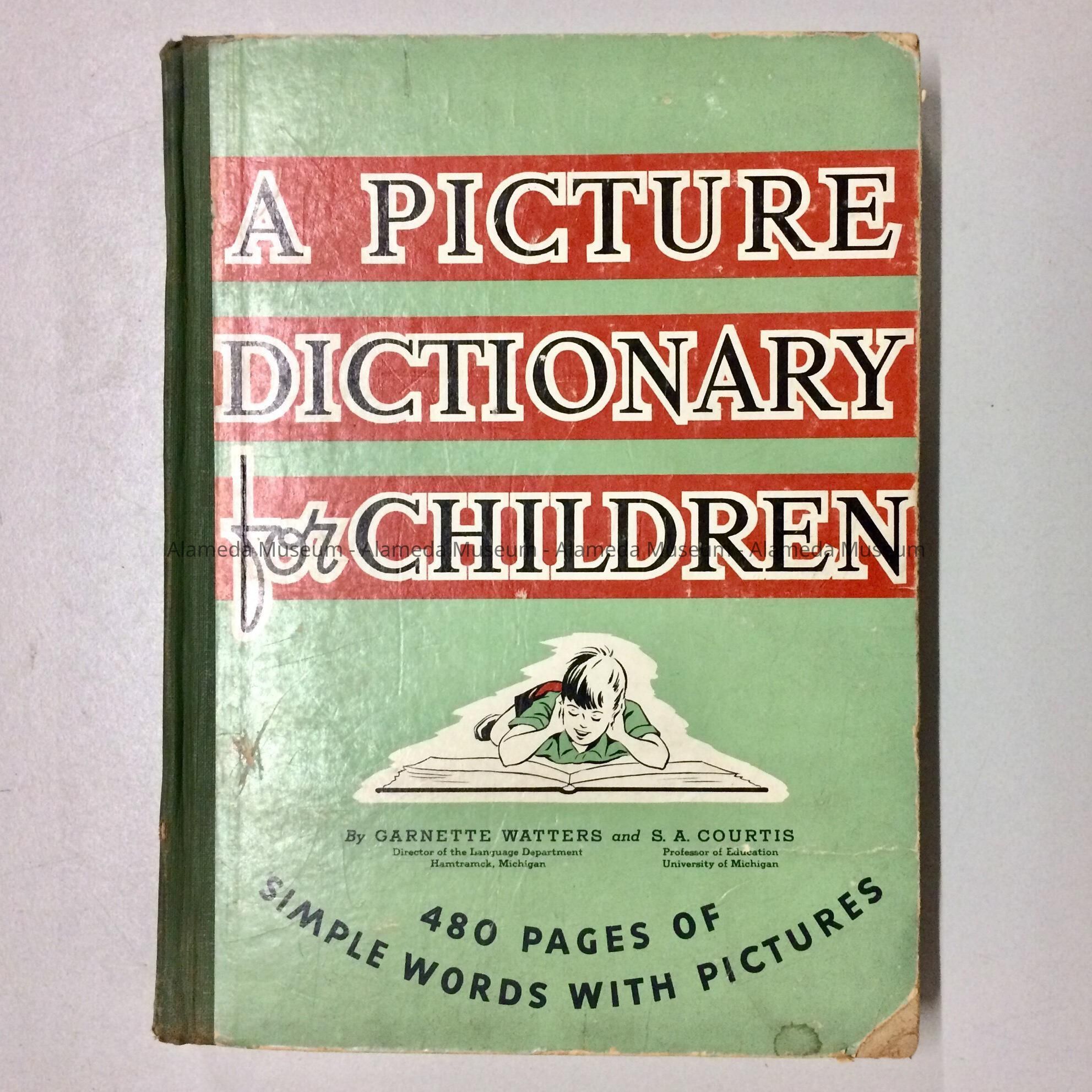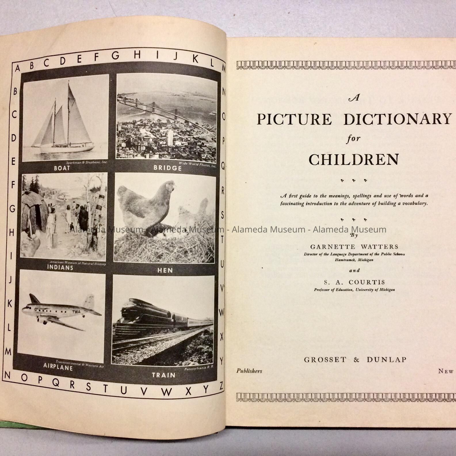 A PICTURE DICTIONARY THAT BELONGED TO W KEITH STORM, 1728 CAMBRIDGE DRIVE, ALAMEDA. THE BOOK WAS PRESENTED TO HIM ON FEBRUARY 14, 1941. MR STORM USED THE BOOK WHILE ATTENDING ALAMEDA'S LINCOLN GRAMMAR SCHOOL. HE AND HIS WIFE, CAROLYN, STILL RESIDE AT THE FAMILY HOME AT 1728 CAMBRIDGE DRIVE, ALAMEDA.