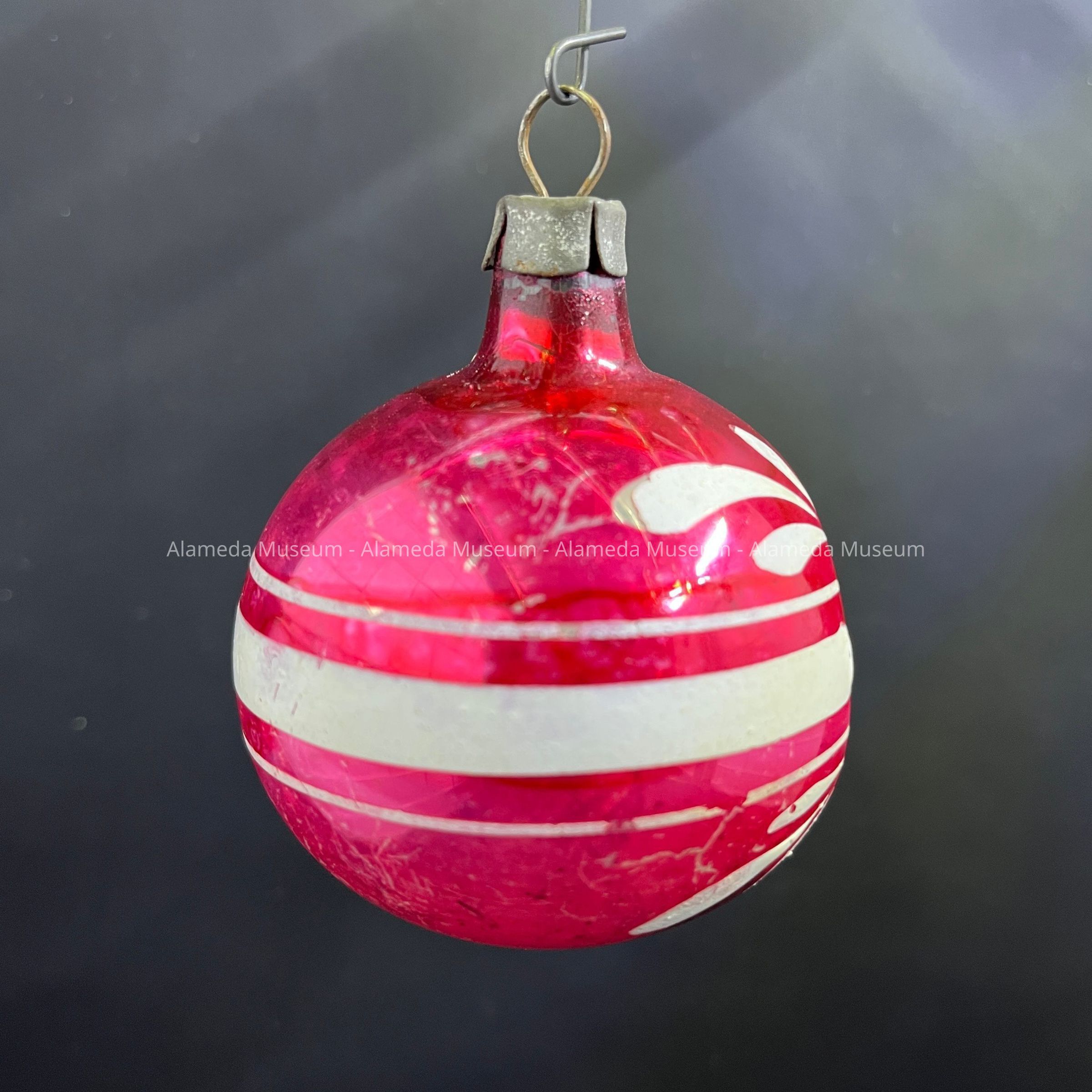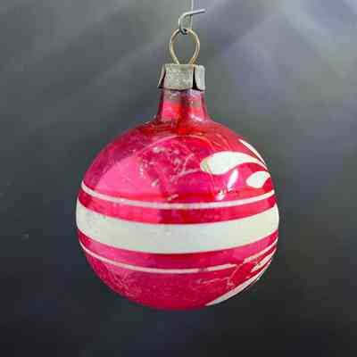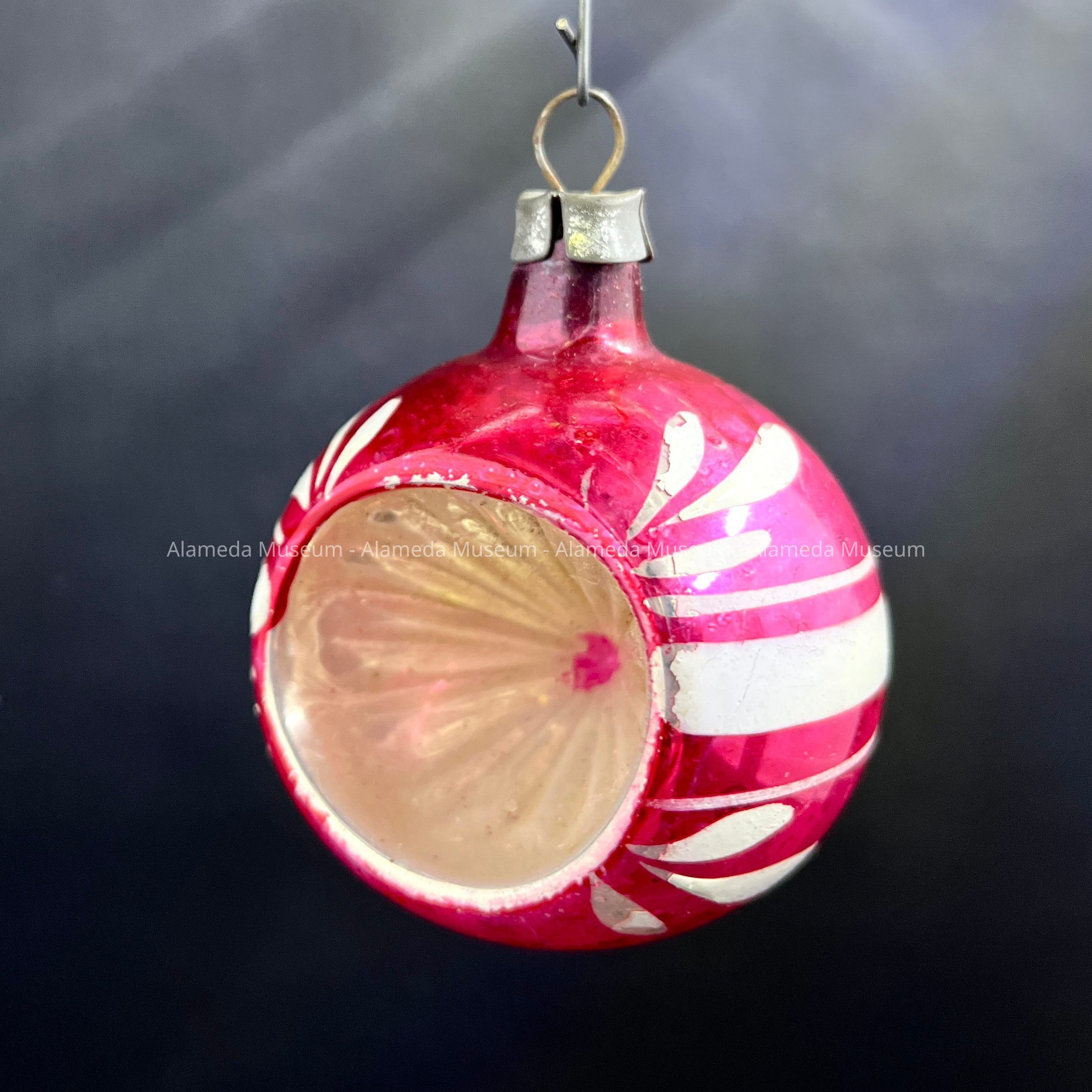Pink and White Glass Indent Christmas Ornament, 1950sEntry/Object ID