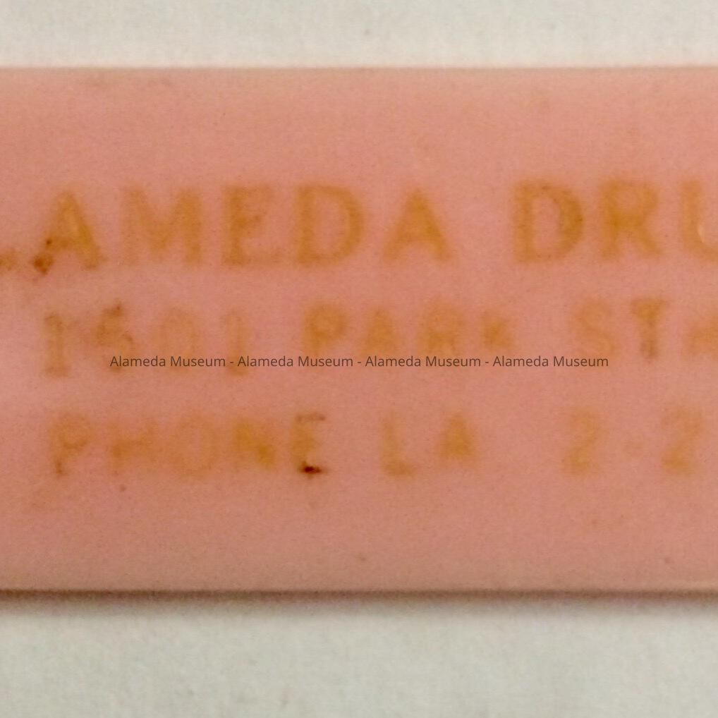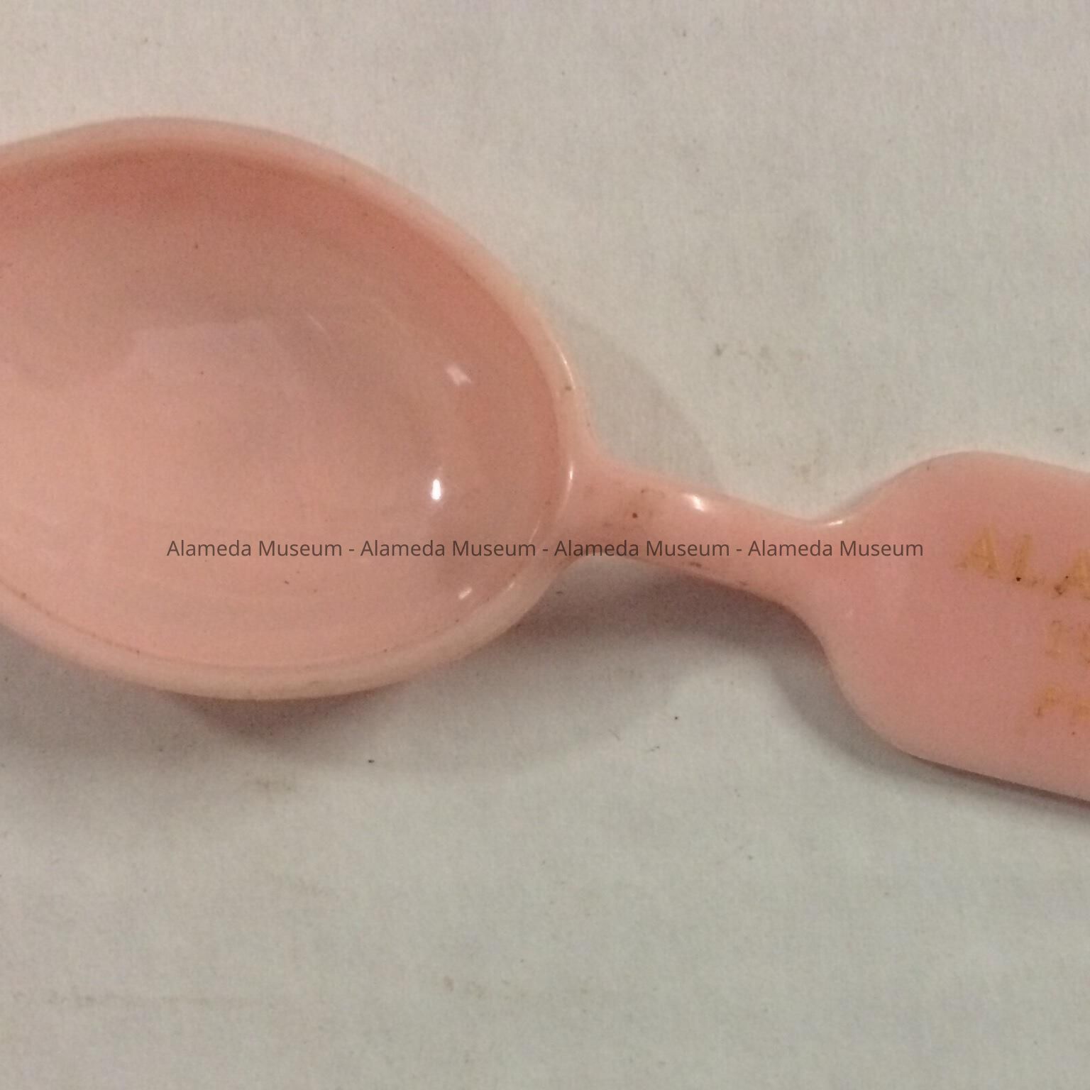 Pink plastic medicine spoon from the Alameda Drug Company, prior to 1970Entry/Object ID