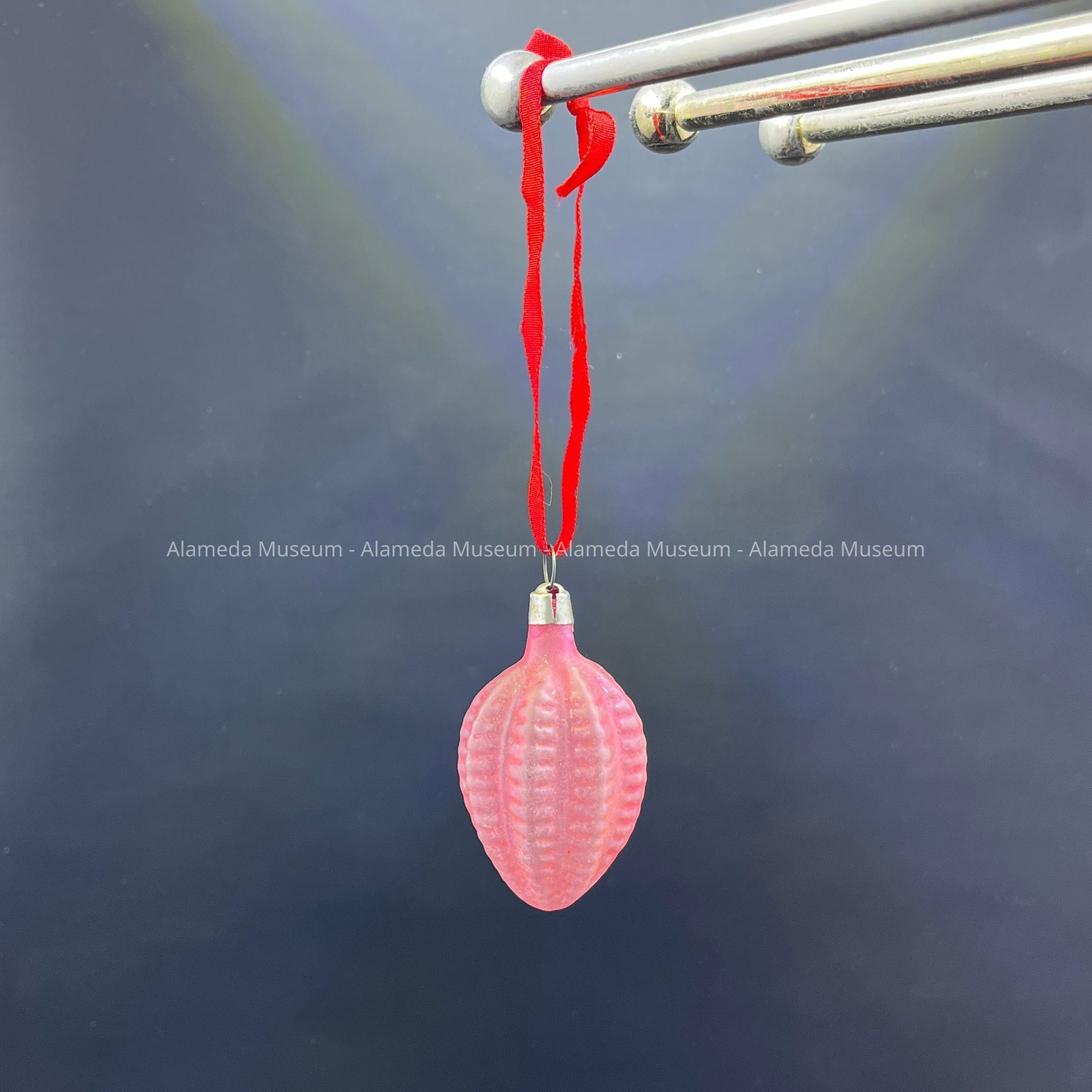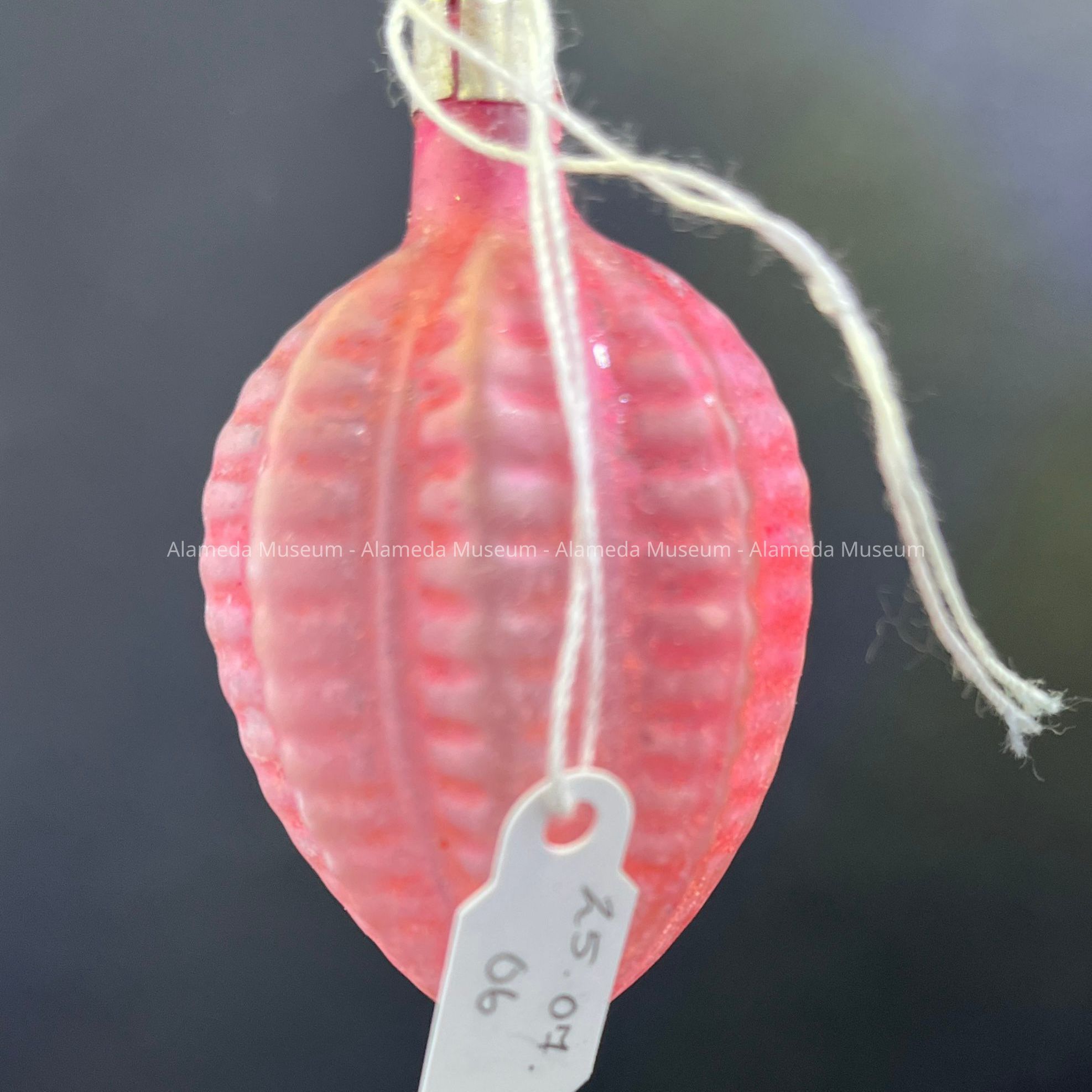 Pink Ribbed Fruit Shaped Christmas Ornament, 1980sEntry/Object ID