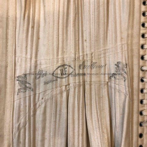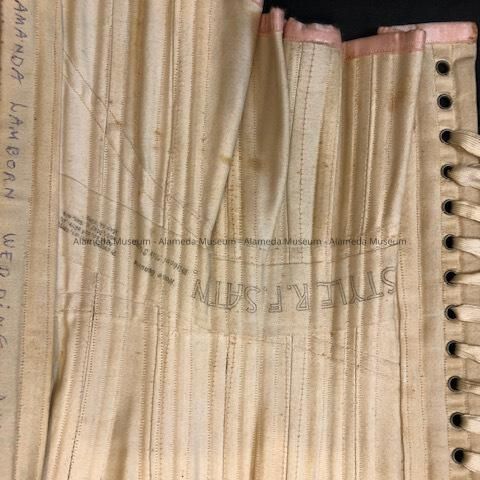 History of Object: Corset worn by Amanda Sylvester to her marriage to Benjamin F. Lamborn (Alameda City Clerk), San Francisco, August 21, 1895.