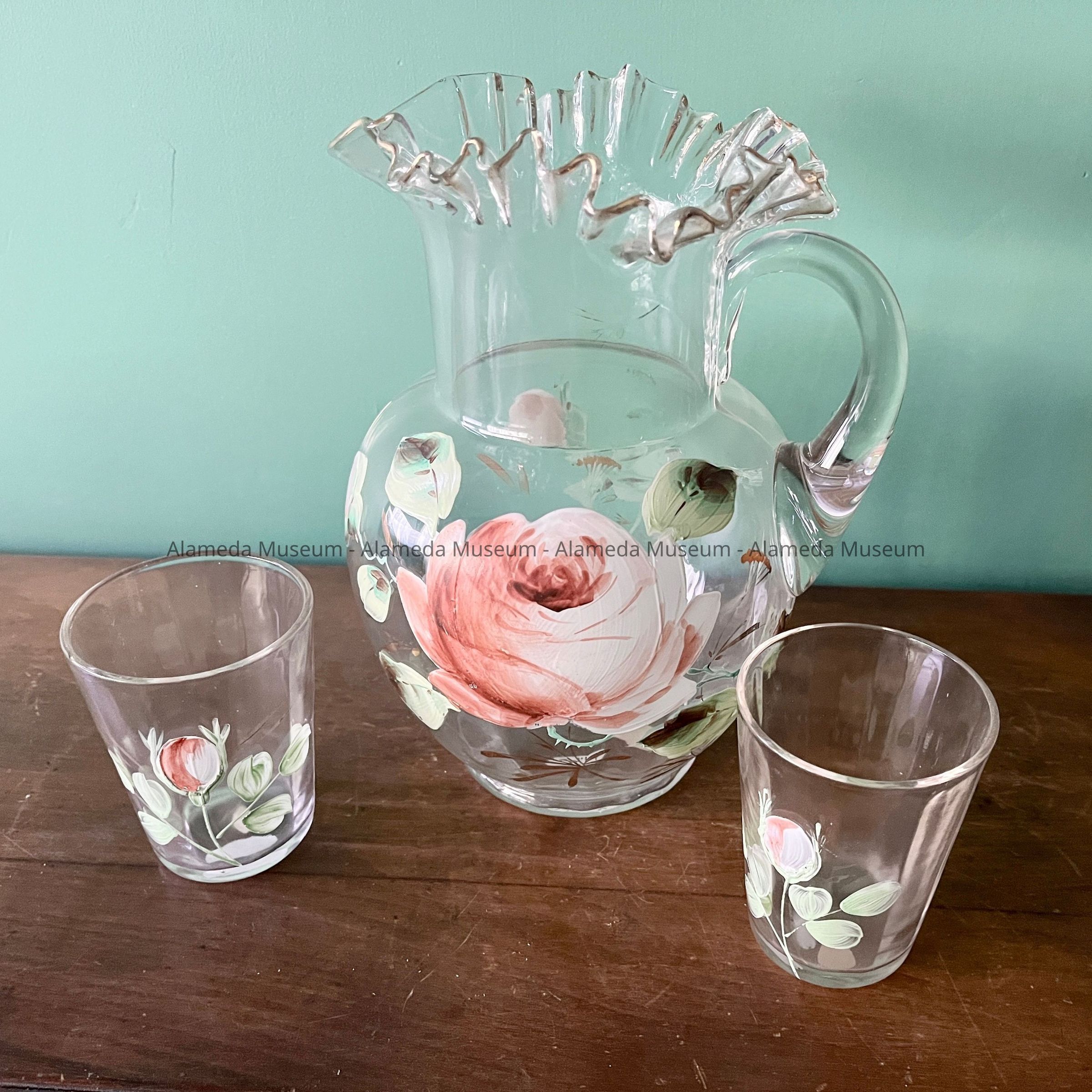 WATER PITCHER (OR LEMONADE SET) THAT BELONGED TO THE GUTLEBEN FAMILY WHO OCCUPIED A HOME AT 1622 FERNSIDE BOULEVARD, ALAMEDA FROM 1914 TO 2004.