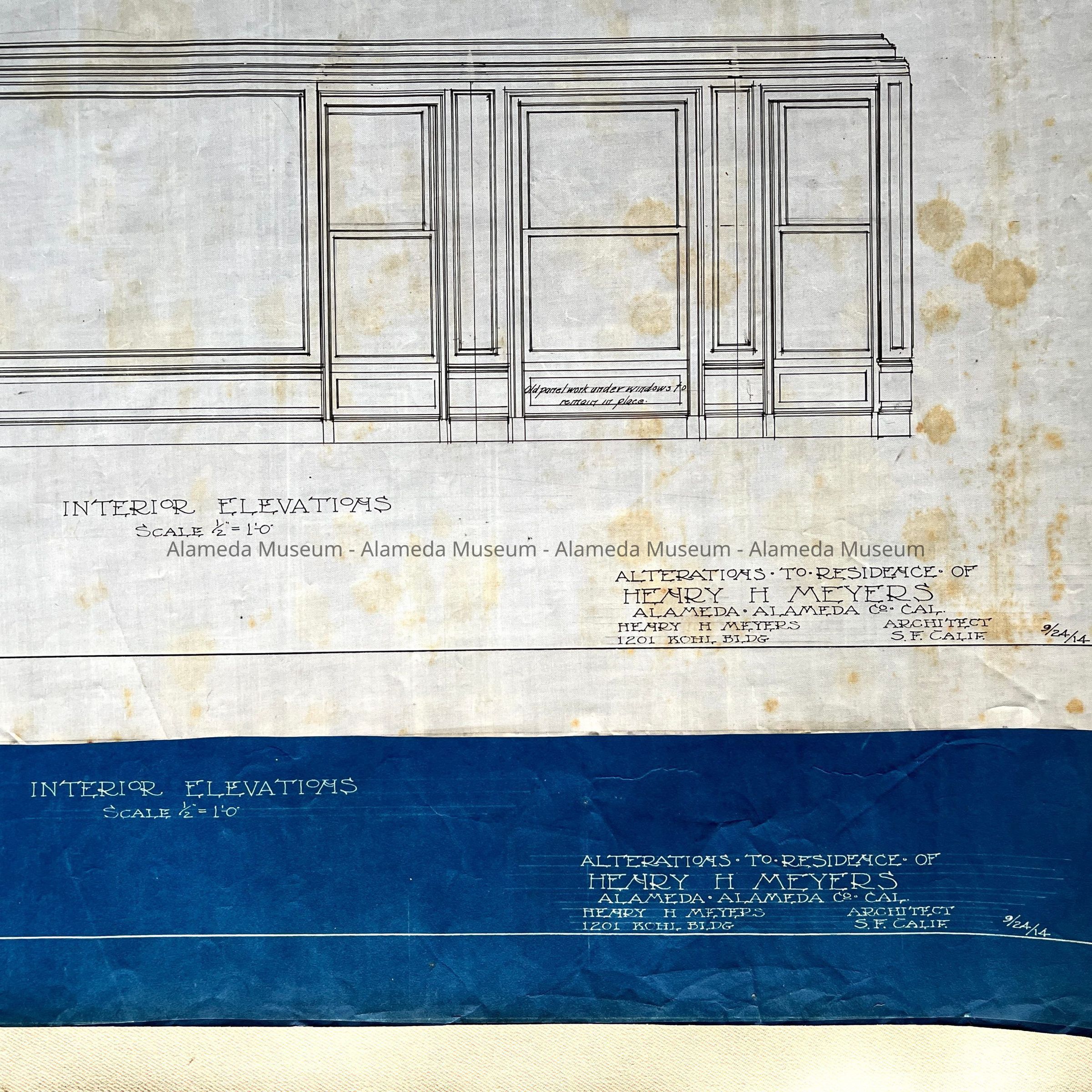 Plan and blueprint copy of alteration to residence of Henry H. Meyers, 1914Entry/Object ID