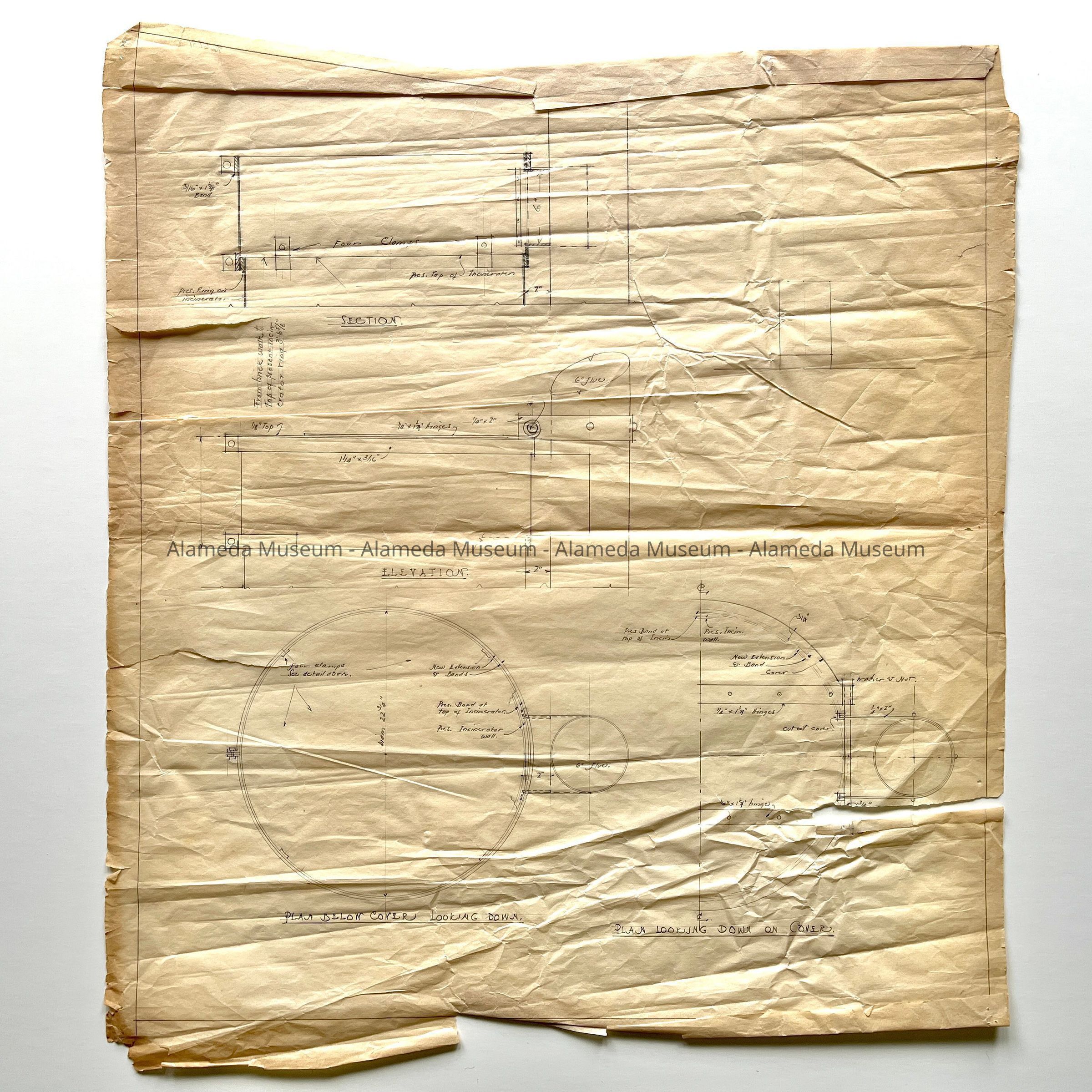 HISTORY OF OBJECT: PLAN DEPICTING DETAIL OF INCINERATOR LOCATED IN THE REAR YARD OF THE HENRY H MEYERS' RESIDENCE, 2021 ALAMEDA AVENUE, ALAMEDA, CA.