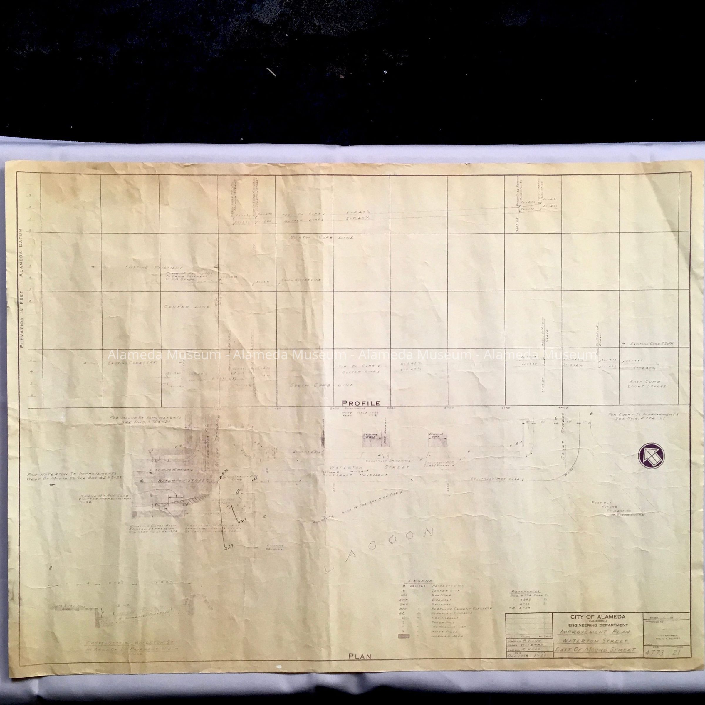 A PLAN FROM THE ENGINEERING DEPARTMENT, CITY OF ALAMEDA, FOR IMPROVEMENTS TO WATERTON STREET, EAST OF MOUND STREET, AND DATED 1958.